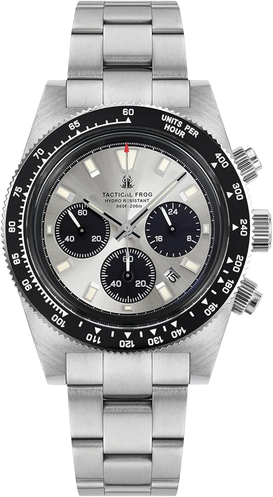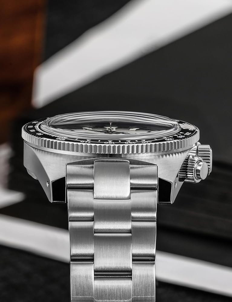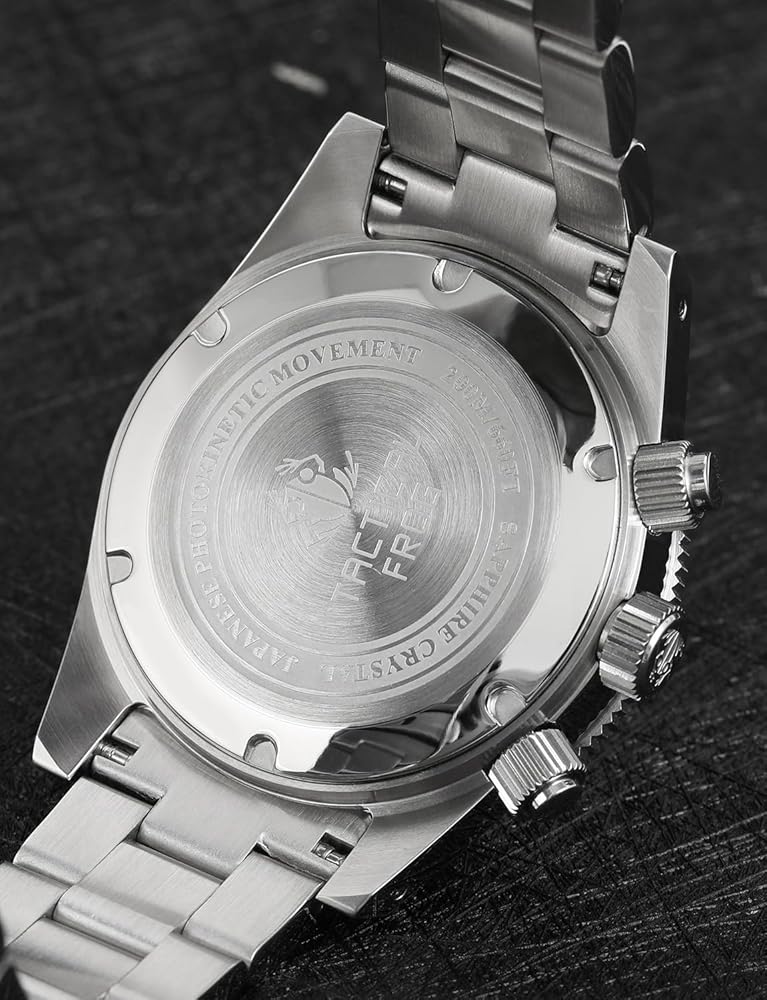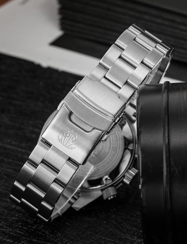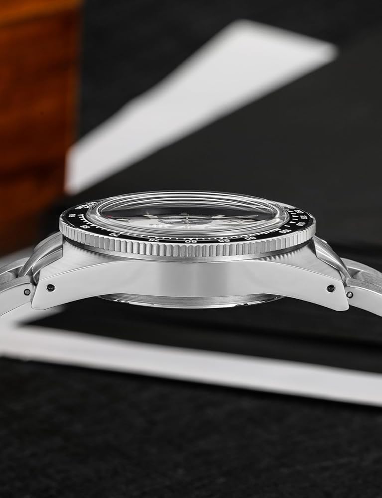 متينة ومقاومة للتآكل: هذه الساعة مصنوعة من الفولاذ المقاوم للصدأ 316L وإطار من السيراميك، وقد صُممت لتتحمل الاستخدام اليومي والأنشطة تحت الماء. تضمن متانتها الاستثنائية ومقاومتها للتآكل أداءً طويل الأمد.