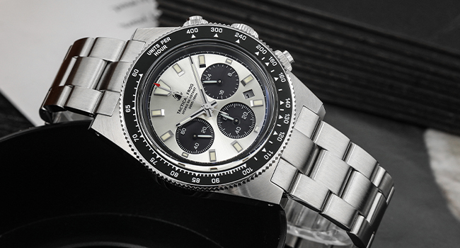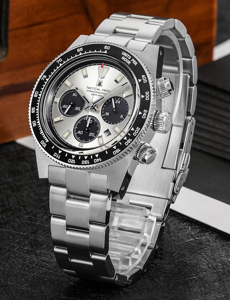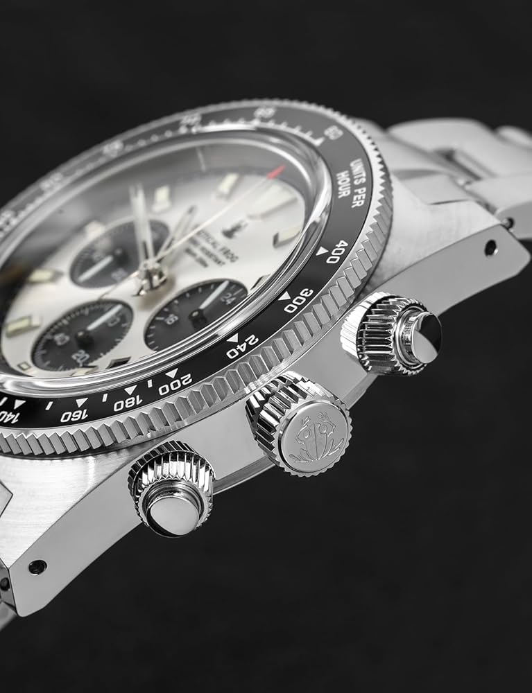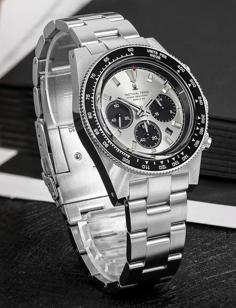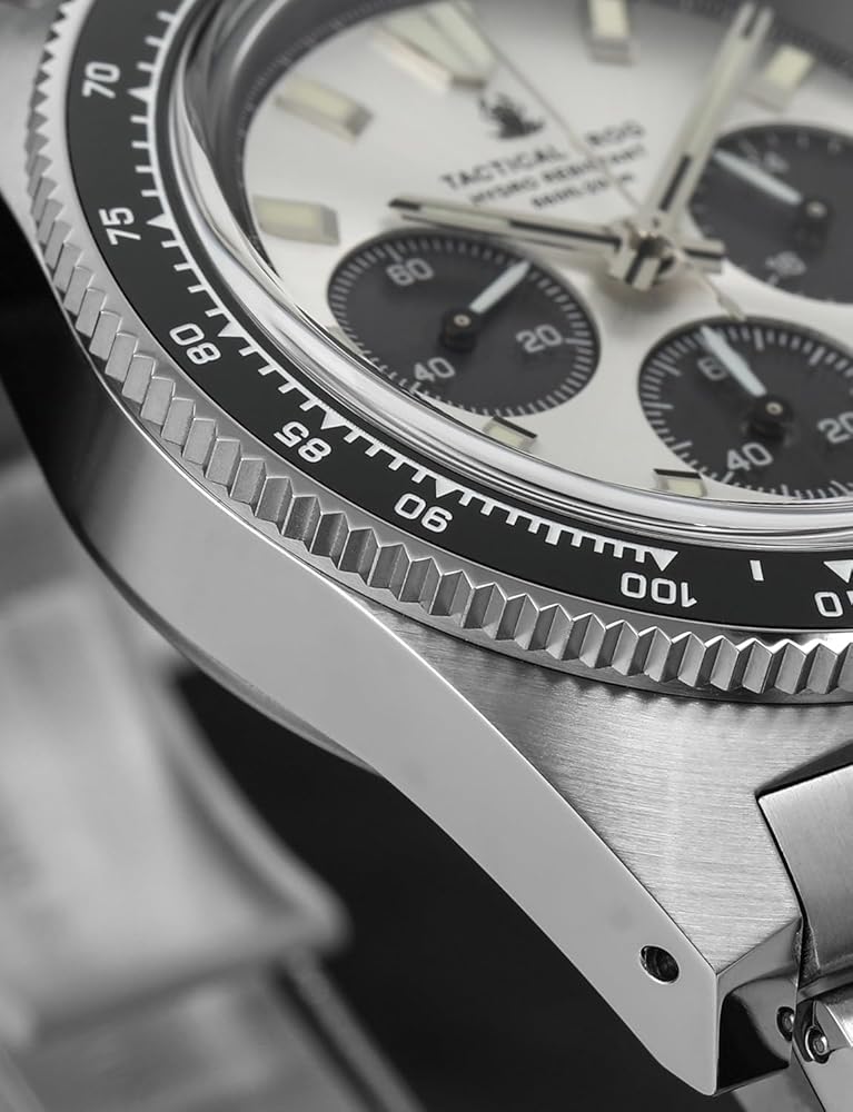 متينة ومقاومة للتآكل: هذه الساعة مصنوعة من الفولاذ المقاوم للصدأ 316L وإطار من السيراميك، وقد صُممت لتتحمل الاستخدام اليومي والأنشطة تحت الماء. تضمن متانتها الاستثنائية ومقاومتها للتآكل أداءً طويل الأمد.