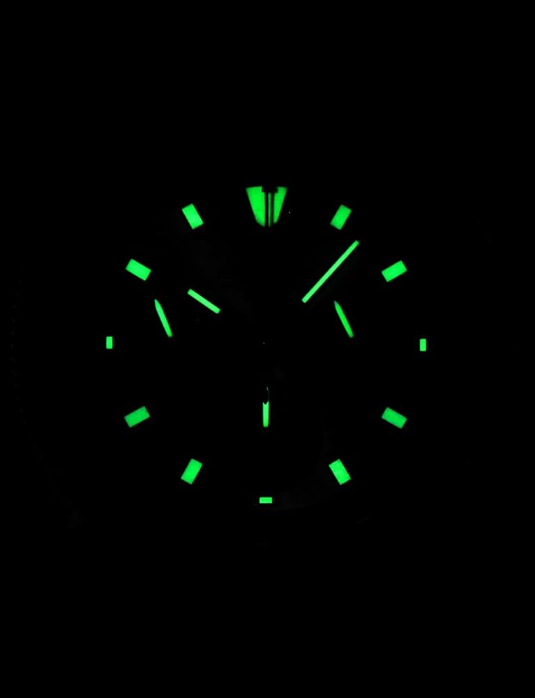 رؤية محسنة: تم تصميم هذه الساعة باستخدام توهج أخضر C3، مما يوفر إمكانية قراءة ممتازة في ظروف الإضاءة المنخفضة. سواء كنت في غرفة ذات إضاءة خافتة أو تستكشف الأماكن الخارجية ليلاً، يمكنك الاعتماد على هذه الساعة لإبقائك على اطلاع.
