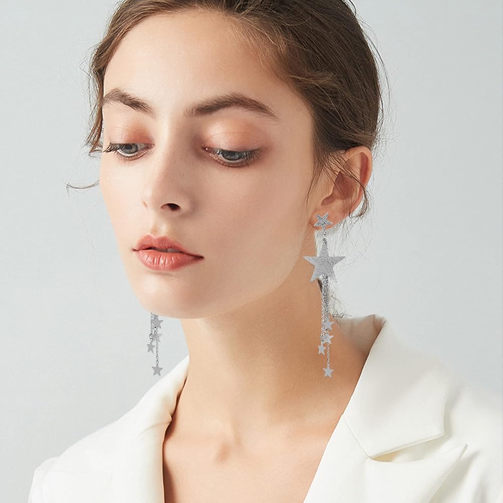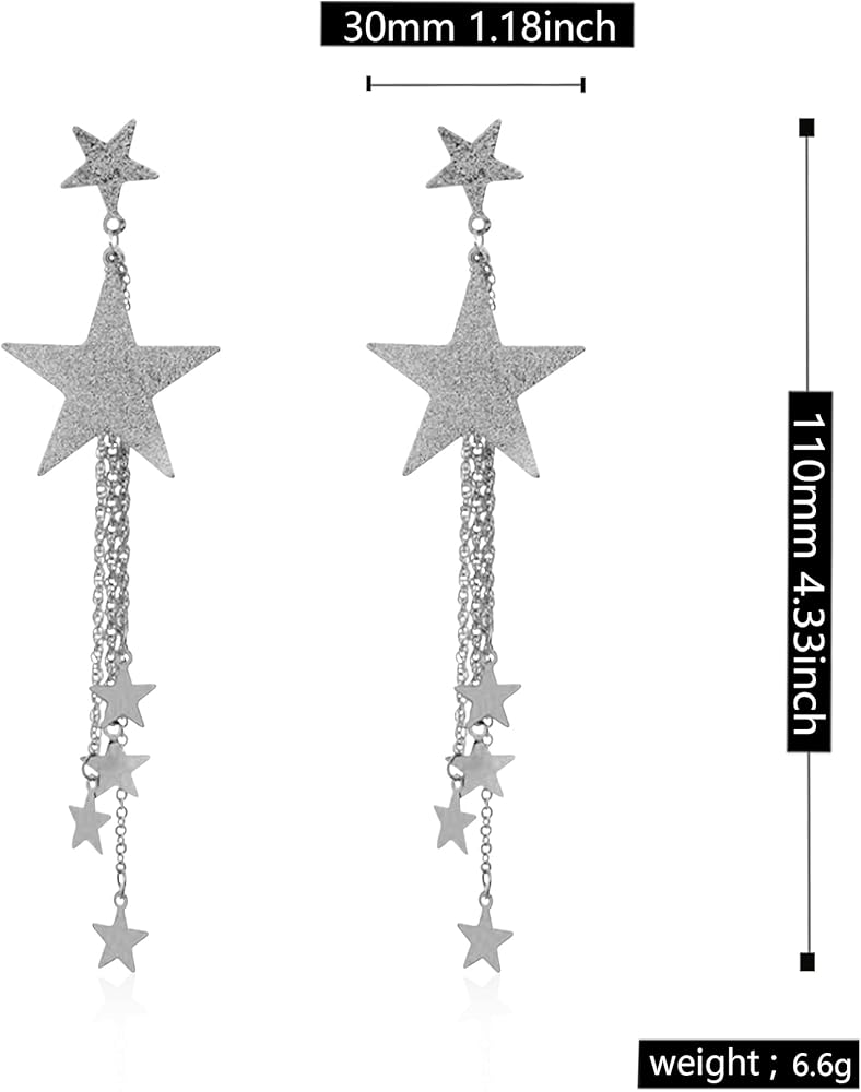 النمط: هذه الأقراط الطويلة الفريدة والرائعة من سلسلة شرابة الحظ مصنوعة من معدن لا يسبب الحساسية، ومناسبة للأذنين الحساسة، وإبر الفضة الإسترلينية S925، وطلاء وتلميع الذهب عيار 18 عالي الجودة، مما يجعل الأقراط لامعة. مقاسات متعددة تصميمات النجوم المختلفة، مثل السماء المرصعة بالنجوم بأكملها التي ترتديها على الأذنين، جميلة جدًا. سواء كانت مطابقة الفساتين أو الملابس اليومية.