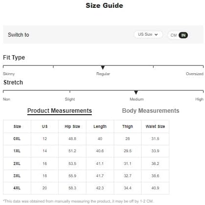 4X-Large Plus: US: 20.0", Hip Size: 58.3", Length: 42.3", Thigh: 34.4", Waist Size: 40.9"
