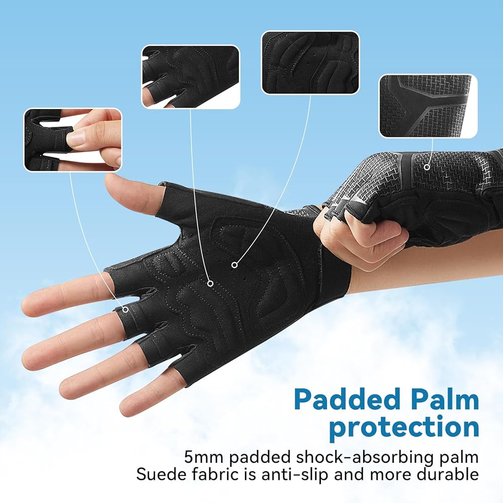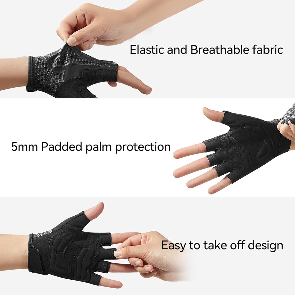 قفازات ركوب الدراجات قفازات الدراجة للرجال/النساء - [وسادة 5 ملم] قفازات ركوب الدراجات نصف اصبع دراجة الطريق دراجة MTB قفازات لركوب الدراجات/التمرين/الدراجة النارية/صالة الألعاب الرياضية/التدريب/في الهواء الطلق