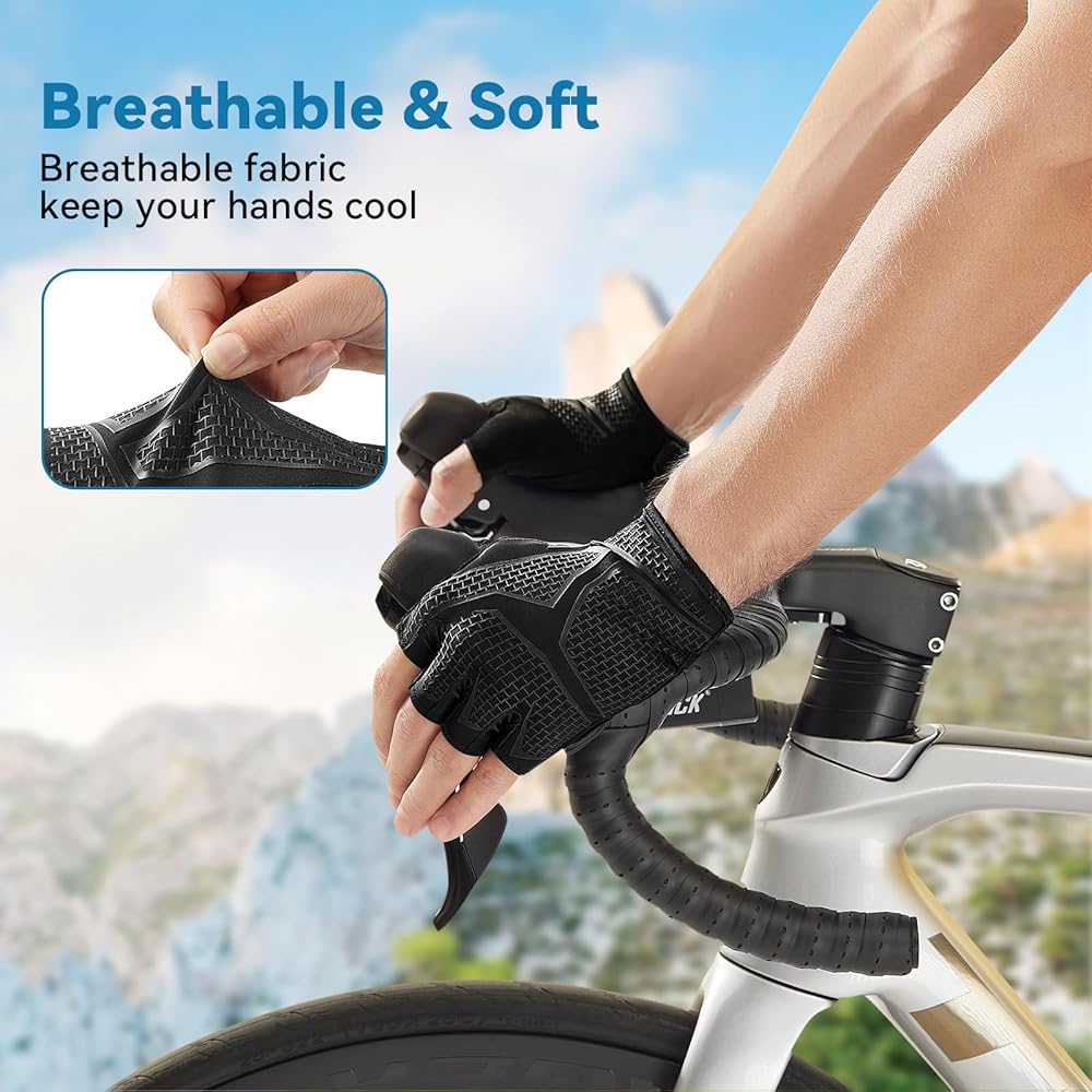 • [نسيج مسامي وملاءمة مريحة] - قفازات الدراجة مصنوعة من نسيج ناعم عالي المرونة، ليست خفيفة الوزن فحسب، بل أيضًا جيدة التهوية. قل وداعًا للقفازات المتعرقة والخانقة. كما أن حوافها الناعمة وخياطتها لن تقطع أصابعك، مما يوفر لك أقصى قدر من الراحة.