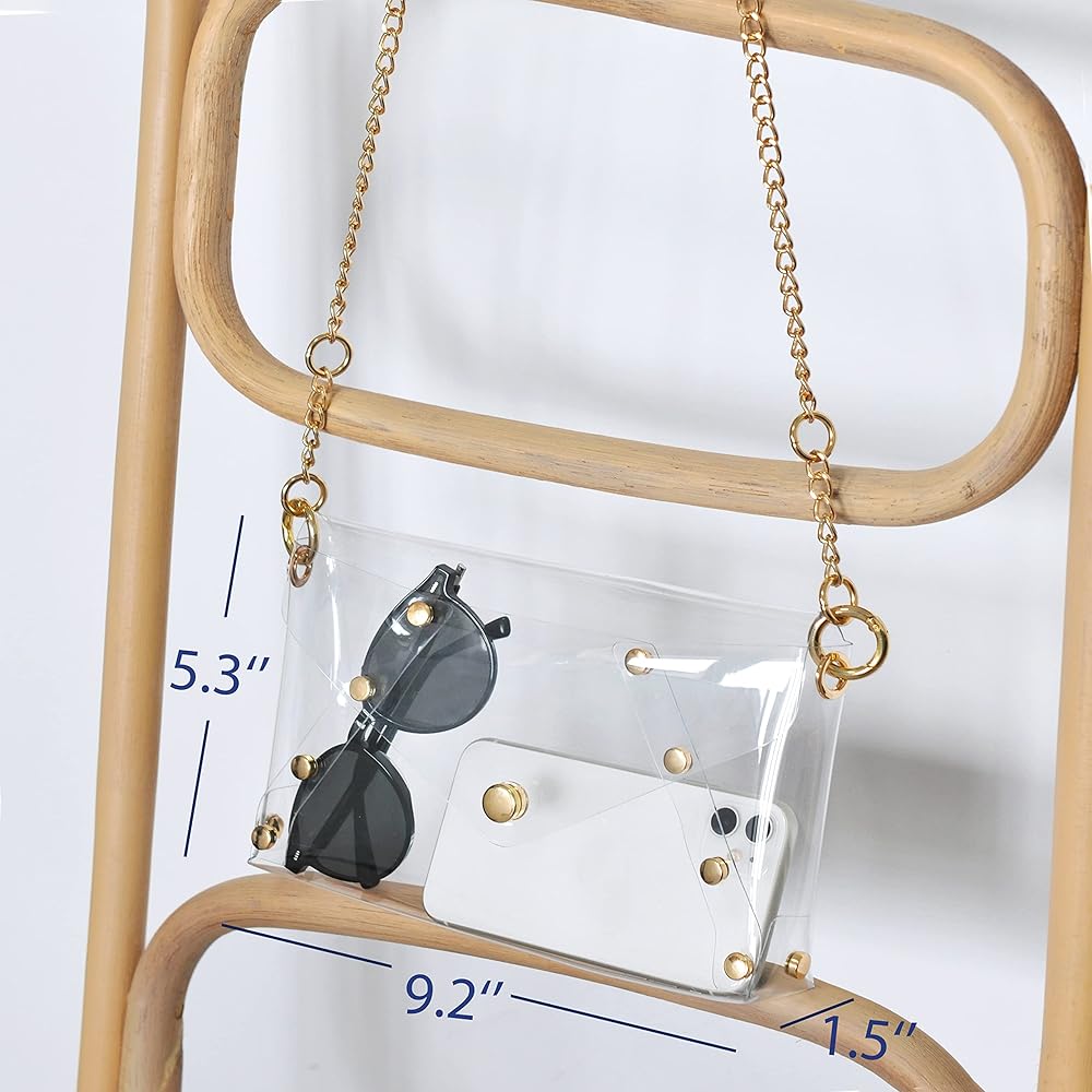 The Versatile Clear Purse come with detachable and adjustable chain strap that can be worn multiple ways as a crossbody or a chic clutch. It can also be easily tossed into your tote as a makeup bag.