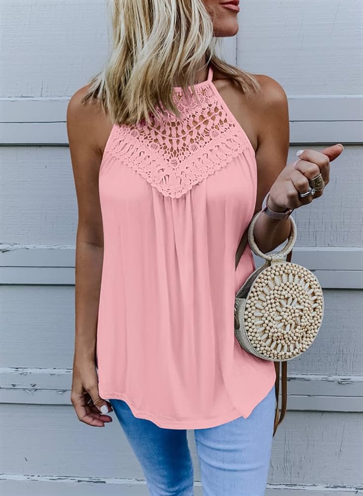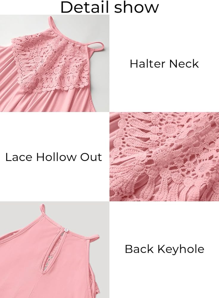 تصميم فريد: قمصان علوية للنساء، قميص بدون أكمام، أشرطة سباغيتي، تصميم مجوف من الدانتيل المثير، فتحة مفاتيح خلفية مع زر للإغلاق، سترة بحاشية واسعة، لون ثابت، رقبة دائرية، قمصان فضفاضة.