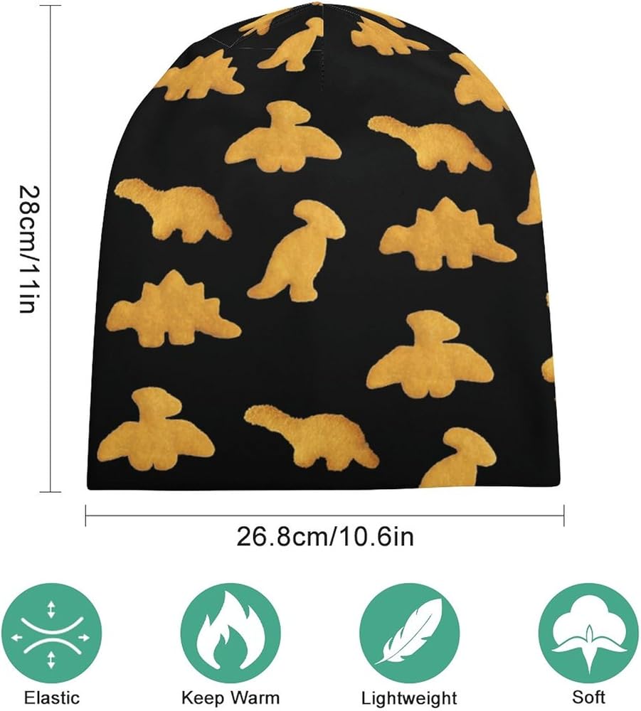 Cute Dinosaur Chicken Nuggets Pattern Beanie Hat for Men Women Knit Warm Casual Hats Classic Winter Cap, Cute Dinosaur Chicken Nuggets Pattern, One size