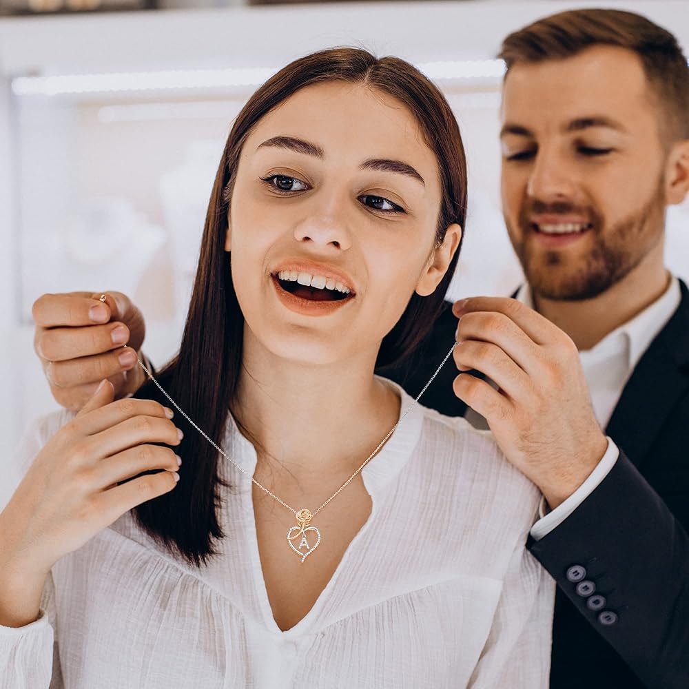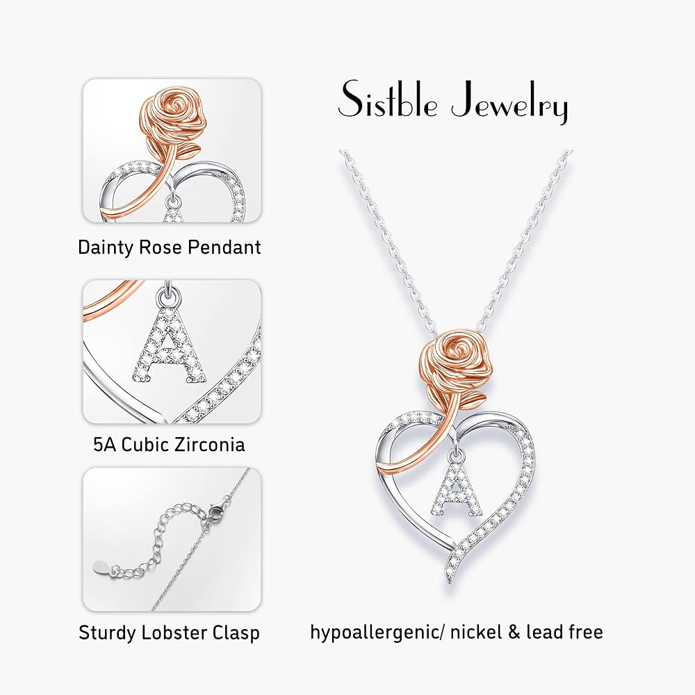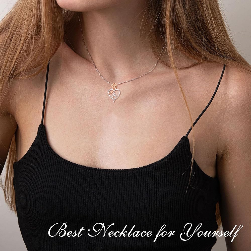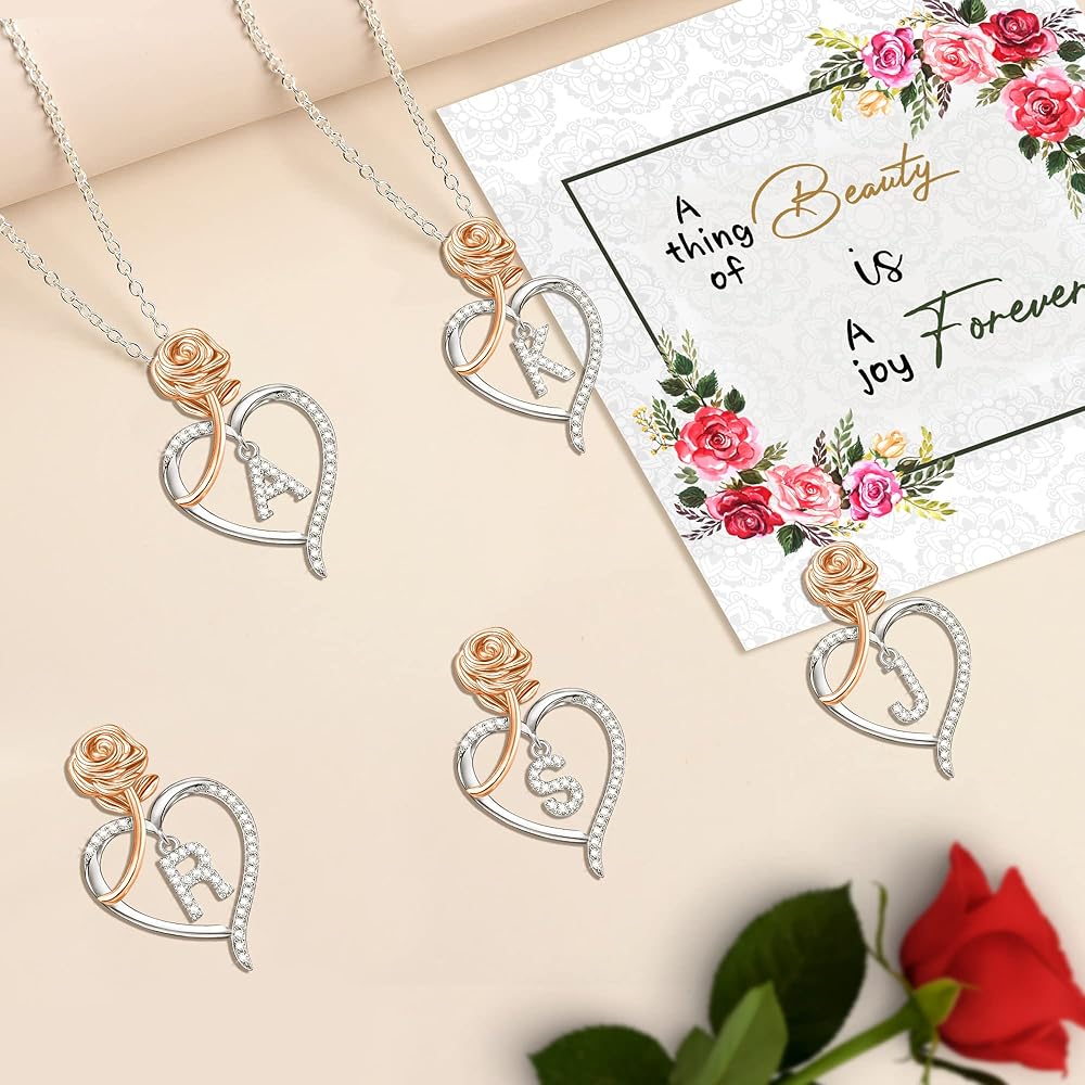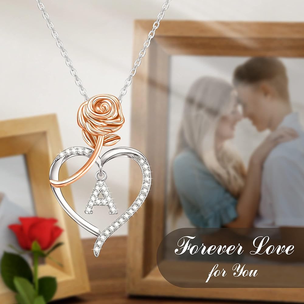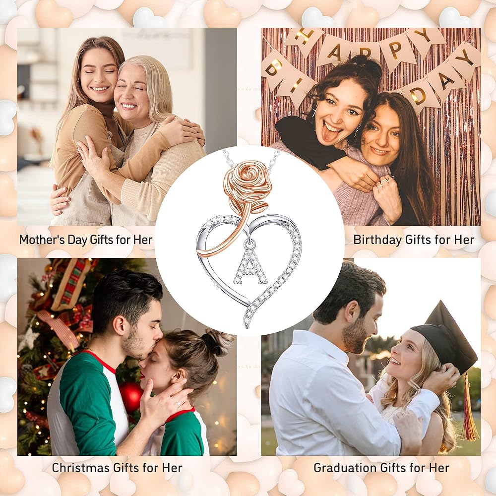 قلادة القلب للنساء في سن المراهقة هدايا روز A-Z القلائد الأولية لابنتي حفيدة قلادة عيد الميلاد عيد الأم الذكرى السنوية هدية عيد ميلاد مجوهرات للأخت أمي زوجة
