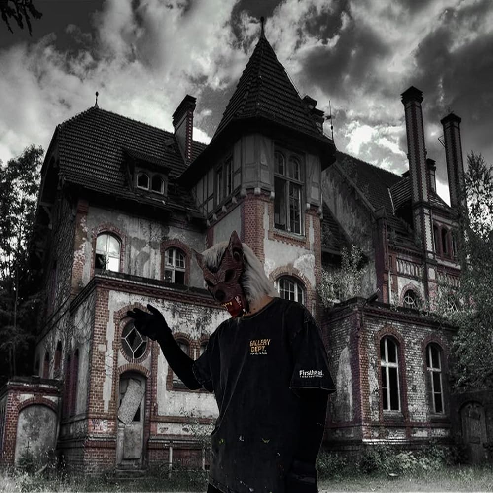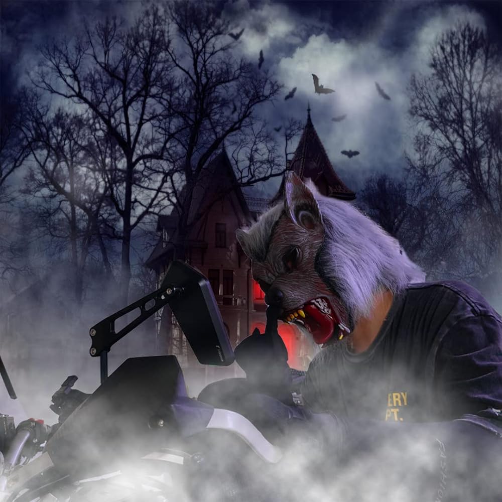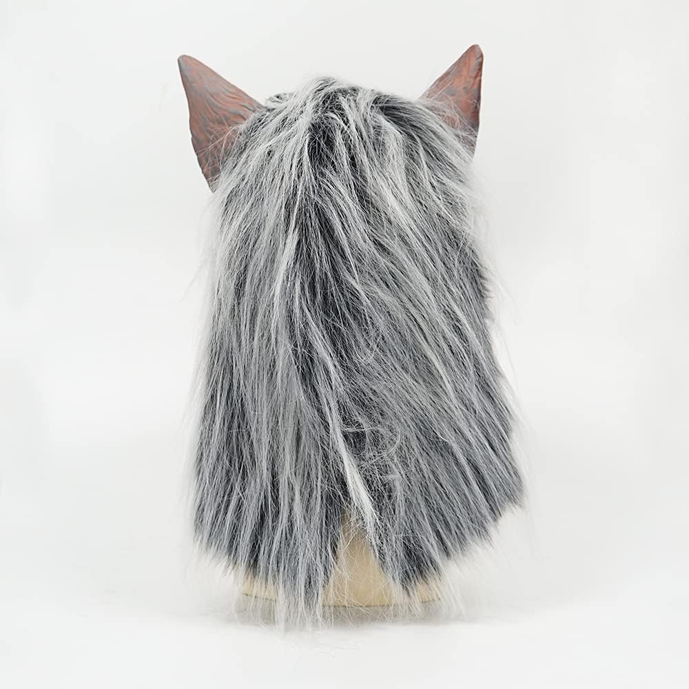 لا ندم- آمن وناعم وسهل الارتداء، يمكن الرؤية من خلال فتحات عيون القناع. شكل رأس ذئب نابض بالحياة ومظهر واقعي.