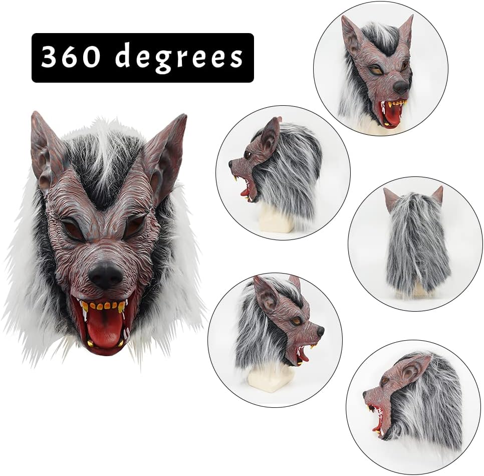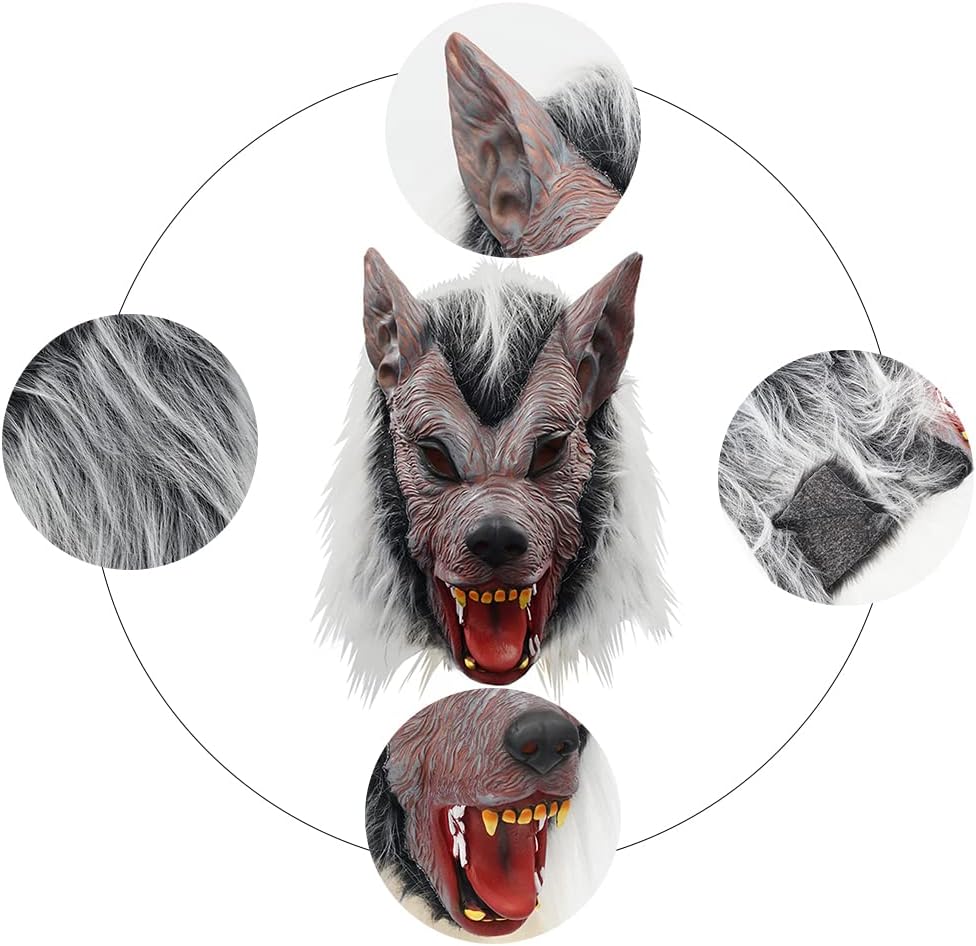 لاتكس طبيعي 100% - صديق للبيئة وغير سام. قناع بالذئب التنكري المبتكر للهالوين من اللاتكس، قناع واقعي برأس حيوان ذئب.