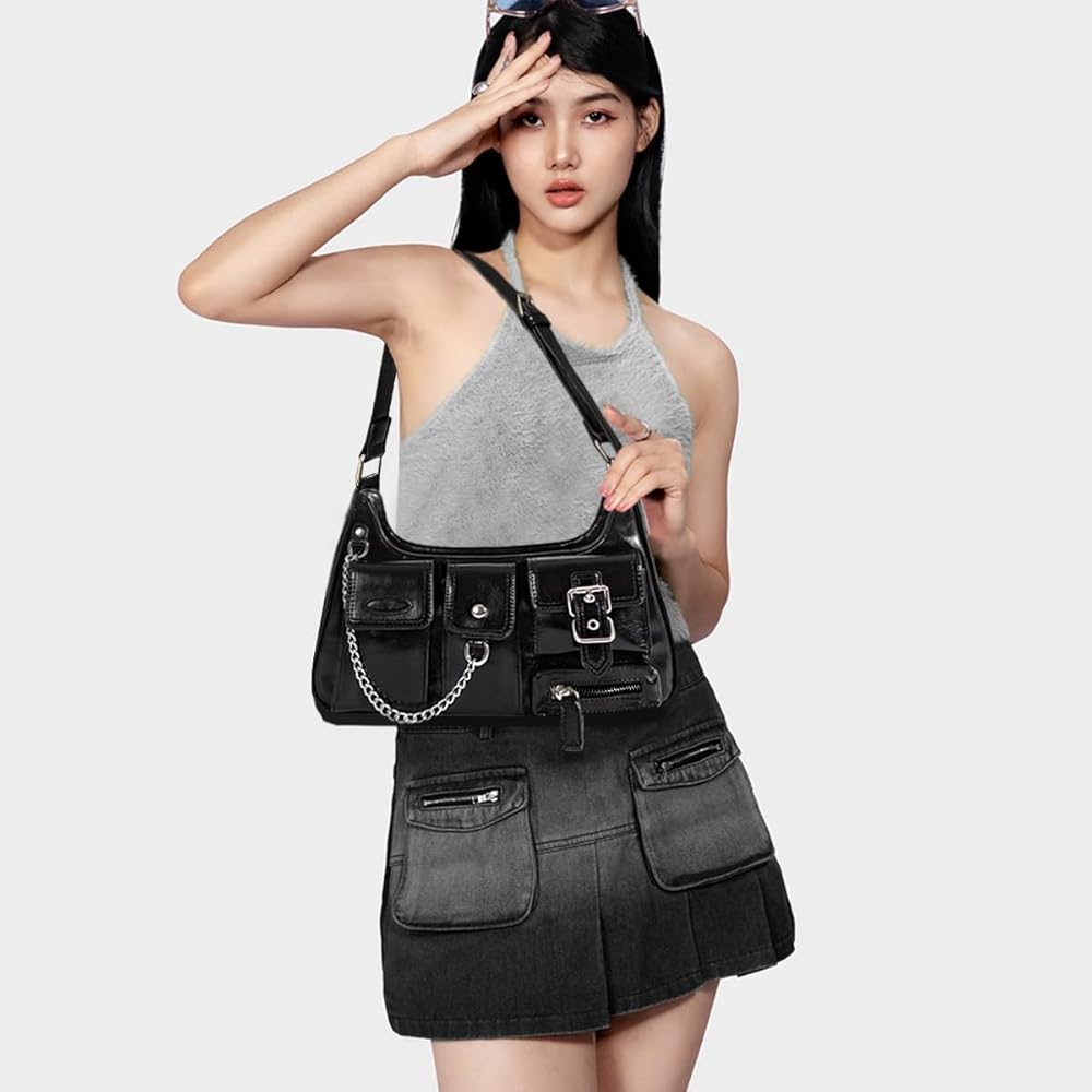 محفظة y2k مصنوعة من جلد البولي يوريثان النباتي عالي الجودة، وتتميز ببطانة من البوليستر، وهي مقاومة للتمزق ومتينة في الاستخدام. حقيبة كتف للفتيات بتصميم فاسق بتصميم فريد، ترفع من جمالك وتجعلك متميزة عن الآخرين، كوني أروع فتاة!
