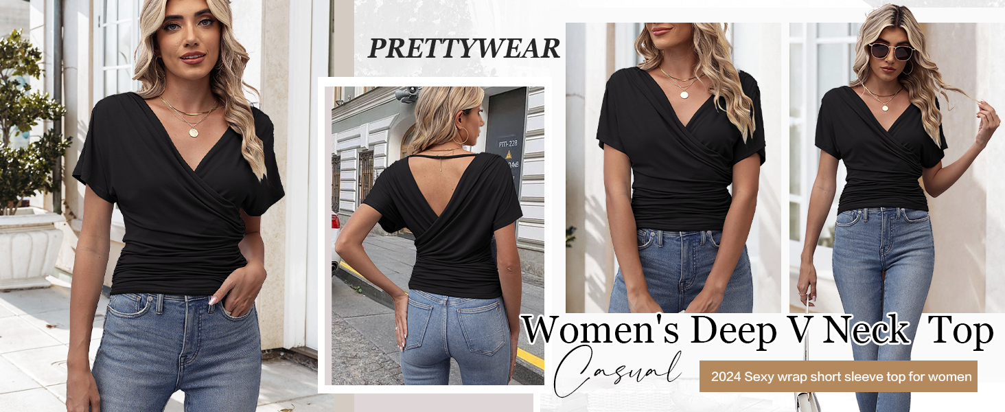 ♥ قمصان ملتفة بشكل متقاطع: تتميز القمصان الأنيقة برقبة عميقة على شكل حرف V، وخصر مكشكش، وقمصان علوية ملتفة من الخلف والأمامية، ومقاس نحيف وأكمام جناح الخفاش، تظهر بشكل مثالي خط صدرك وساحرك الأنثوي.