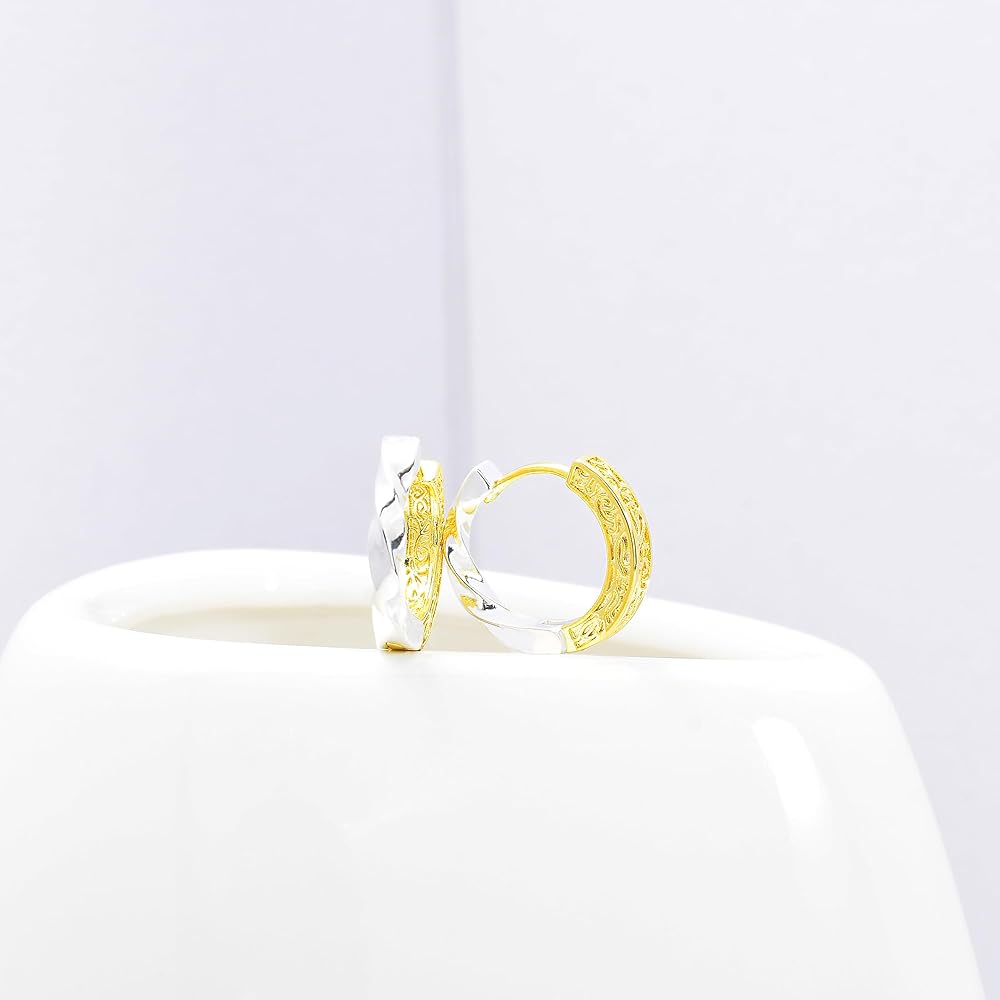 ◊Unique gold and silver hoop earrings feature a two-tone design that exudes a sense of style and sophistication. Whether you're going for a casual or formal look, these earrings are sure to make a statement.