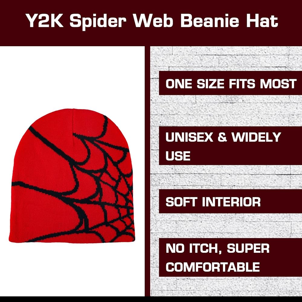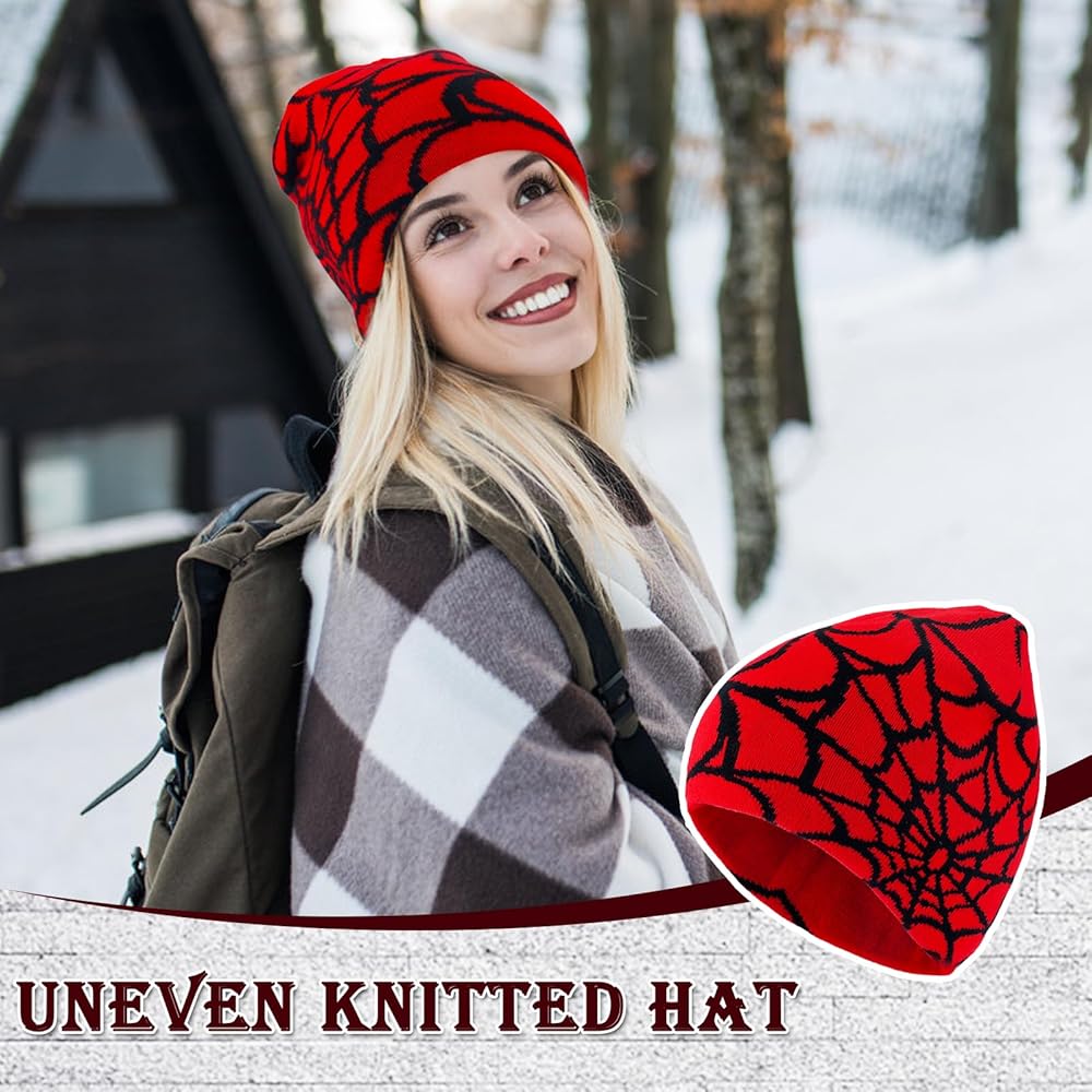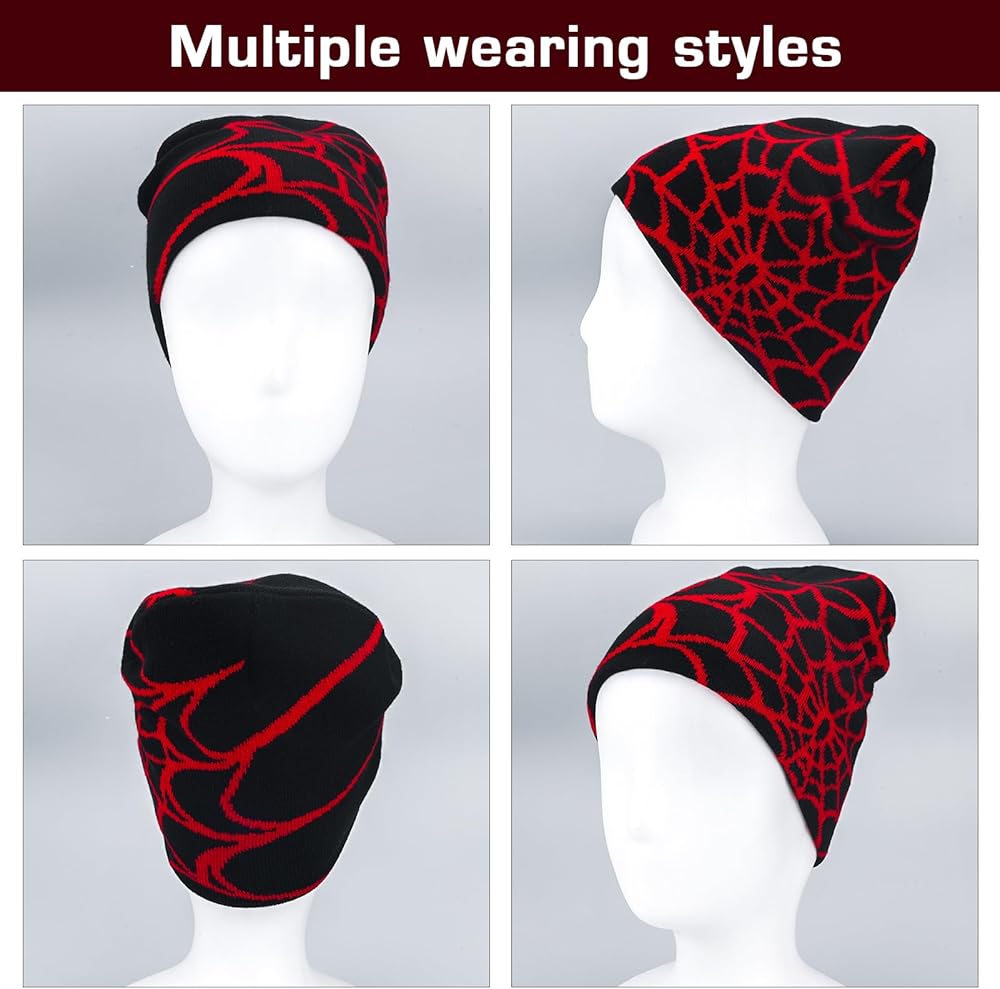 【Unique design】Our headwear accessories are handcrafted from quality materials and the spiderweb patterns have been carefully designed to bring a unique style to your plain beanie. The smooth knit interior prevents scratching and itching, making the Gothic spider hat comfortable to wear all day. With these popular accessories, you'll be the center of attention. Our woolen hats for boys are printed with spiderwebs in different colors to show your personality and match any outfit.