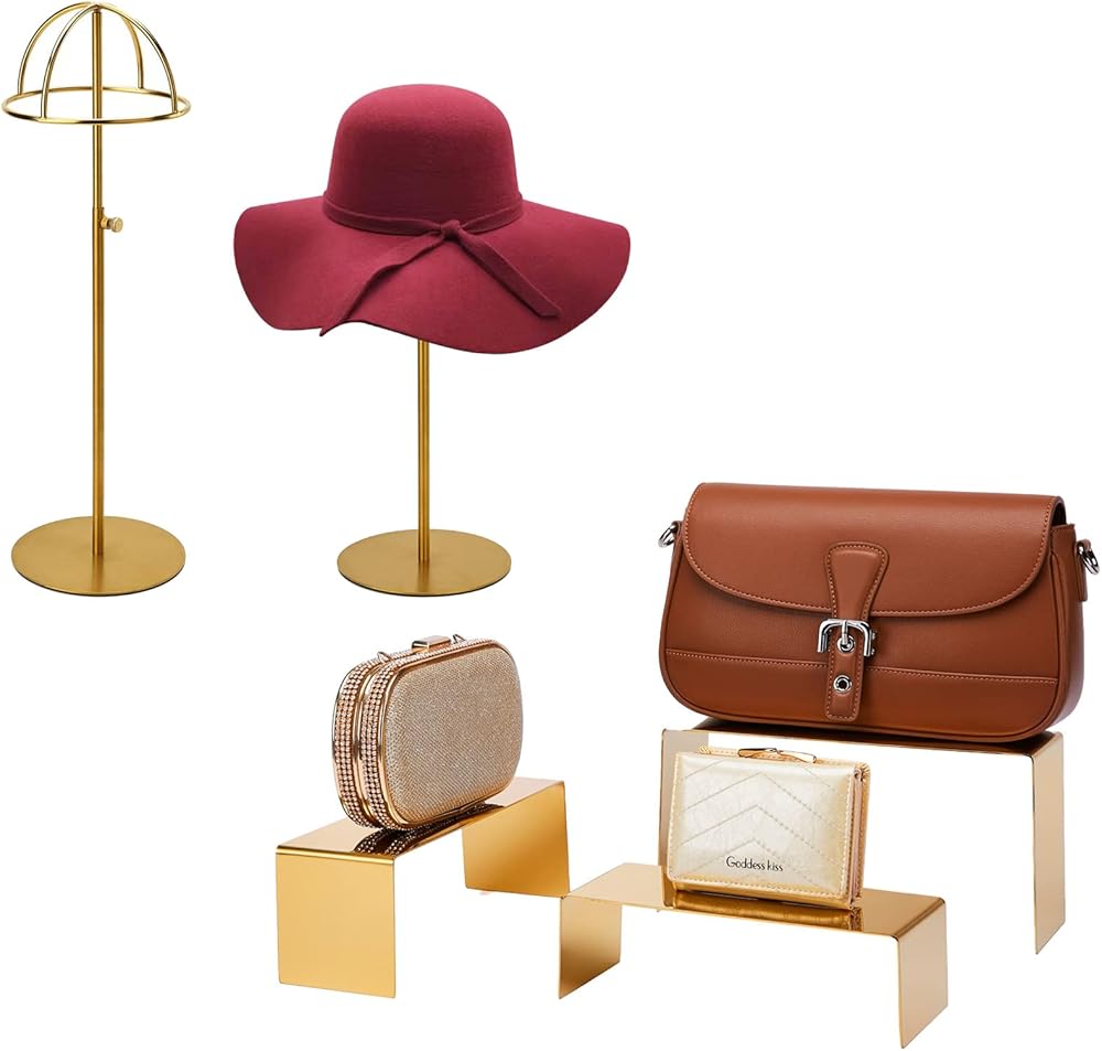 K KAIDIYIN Gold Purse Display Stand and Hat Stand Set