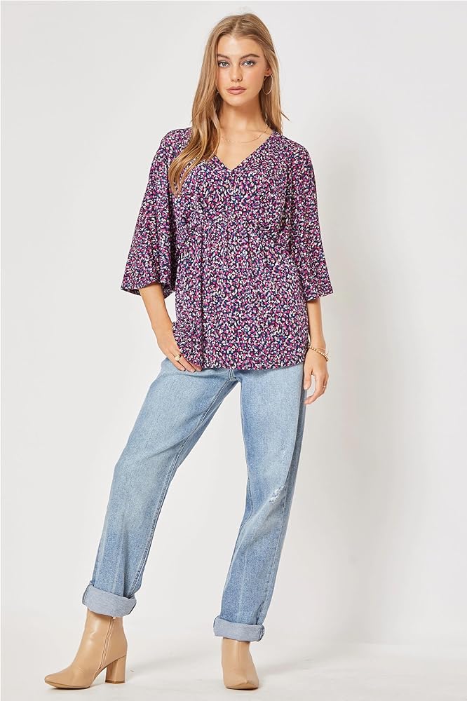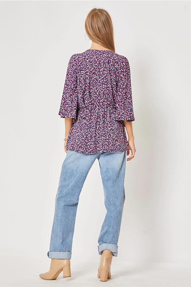 V-neck women's tunics are the perfect fusion of style, sophistication, and versatility. So is our pretty women blouse! It is designed to elevate your fashion game and a add touch of elegance to your wardrobe. Its v-neckline along with an slight elastic waist design that drapes beautifully, make it a trendy option that will help you feel confident wherever you go. Pair these womens 3/4 sleeve tops with jeans and sandals for a daytime stroll or match with heels and statement jewelry for a night out.