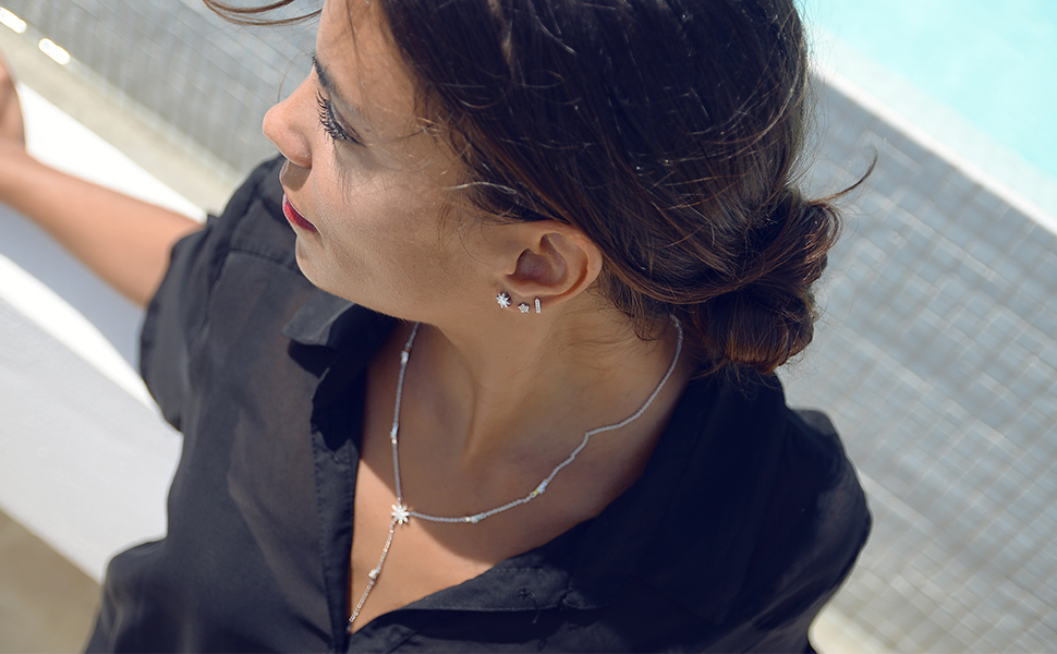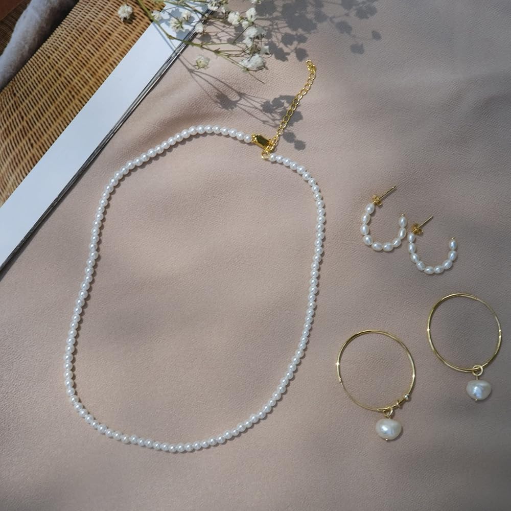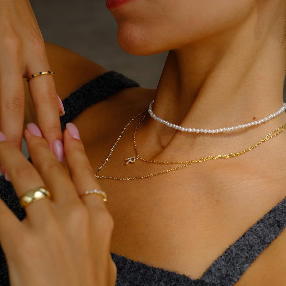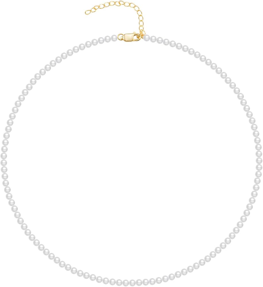 قلادة من الفضة الإسترليني المطلية بالروديوم واللؤلؤ الصغيرة | مطرز طوق اللؤلؤ الأبيض قلادة هدية الزفاف