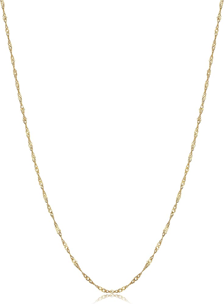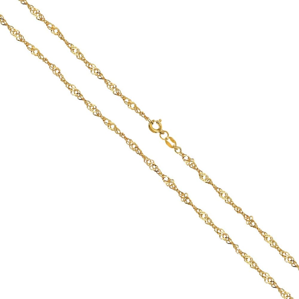 سلسلة سنغافورة من الذهب الأصفر عيار 14 قيراط 1.5 ملم مع مشبك حلقة الربيع