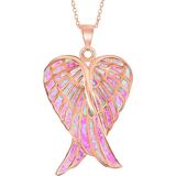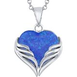 STERLING SILVER heart angel pendant with quality 18-inch silver chain plated with precious rhodium or 14k gold for a long-lasting, anti-tarnish, lustrous finish available in chic color variations silver, gold, or rose gold, with stunning pink blue or white simulated opal stones