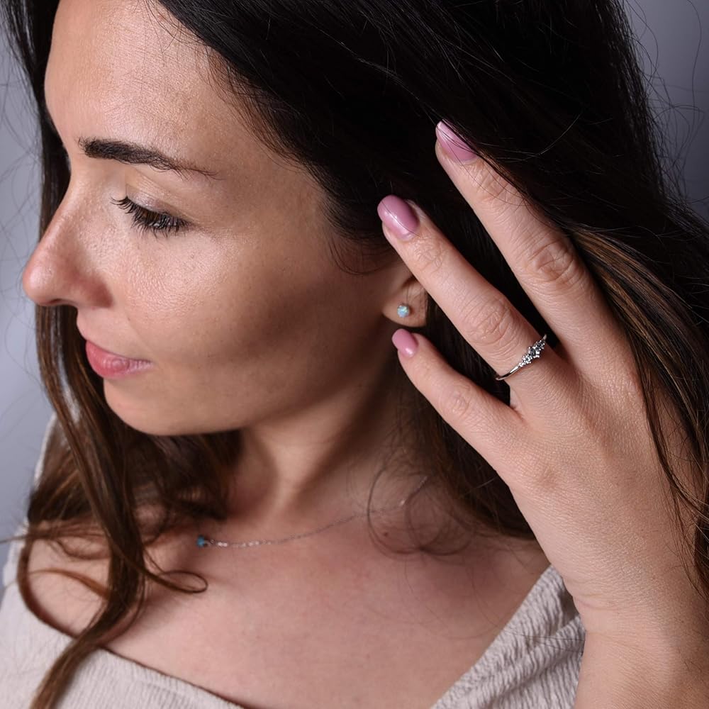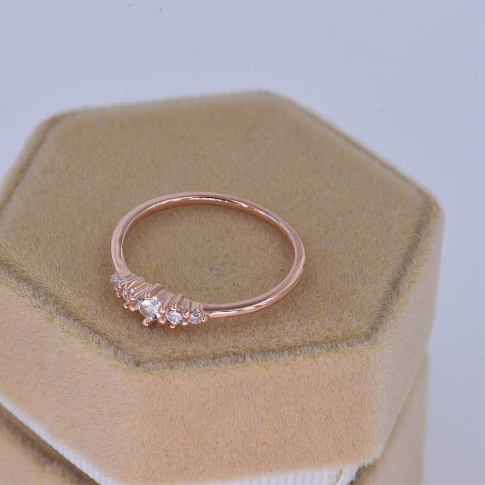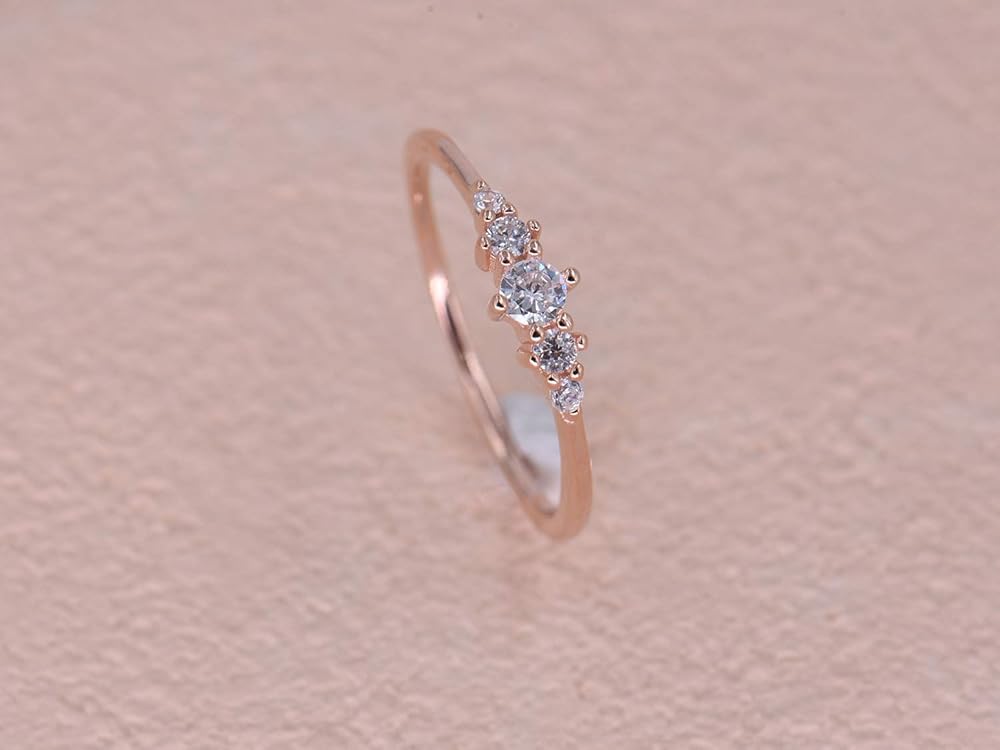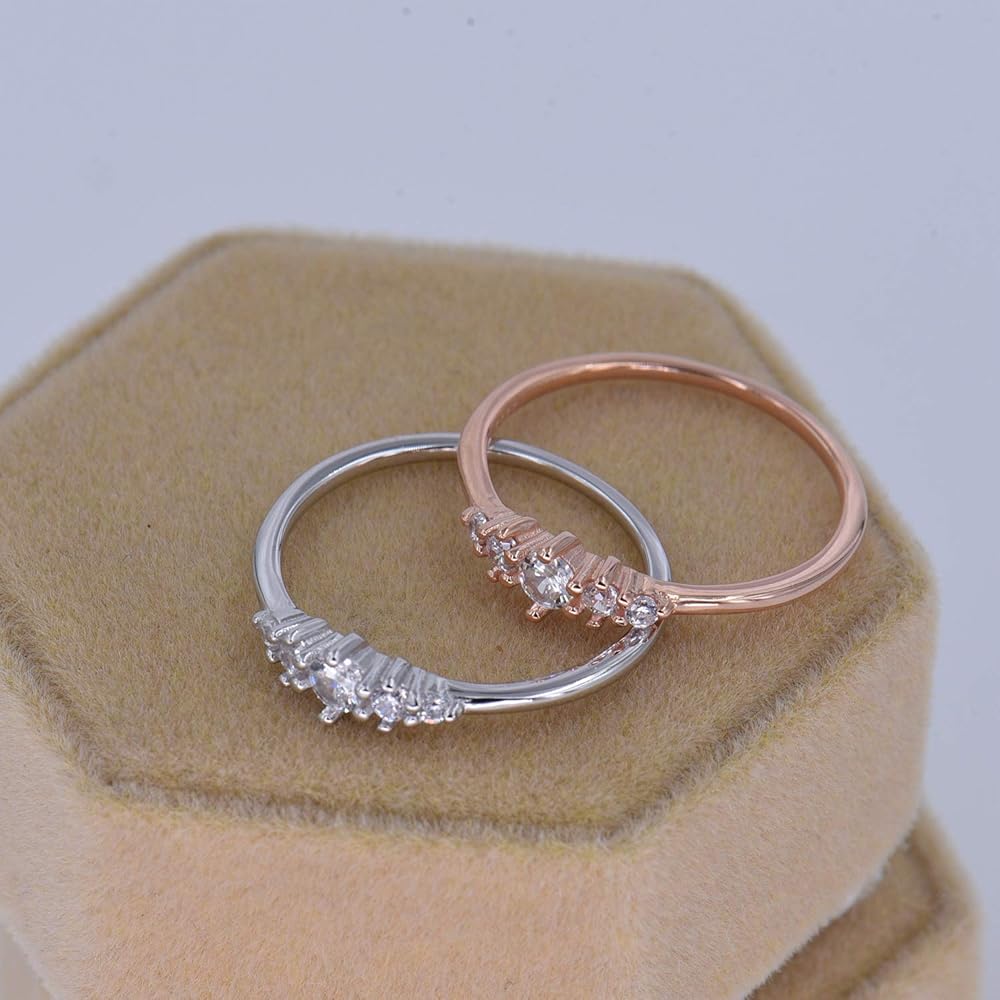 خاتم التراص من الفضة الاسترليني مع 5 أحجار صغيرة من أحجار الزركونيوم