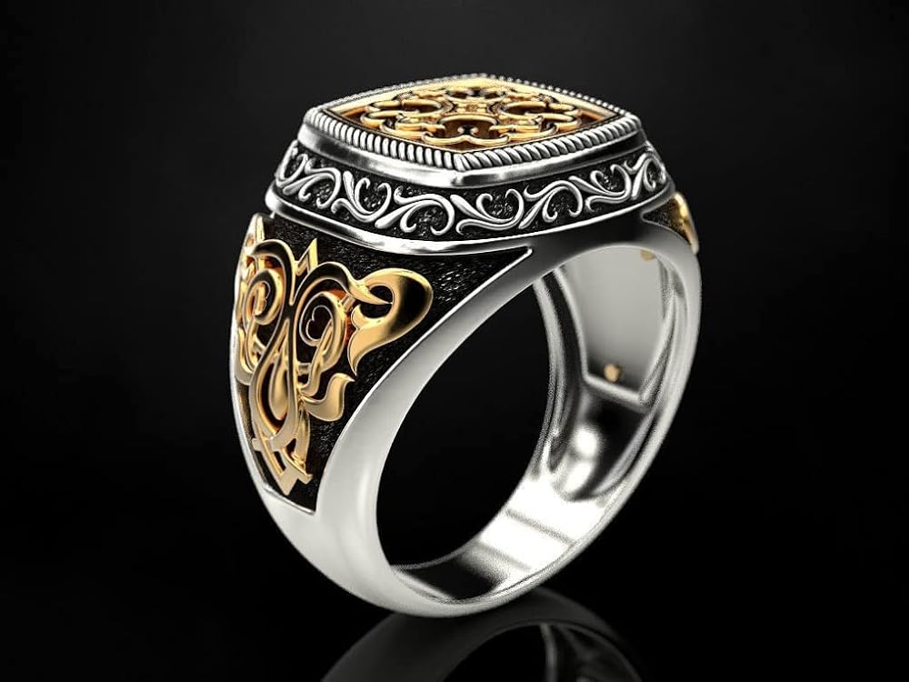 1 x Vintage Engraving Flower Cross Ring for Men