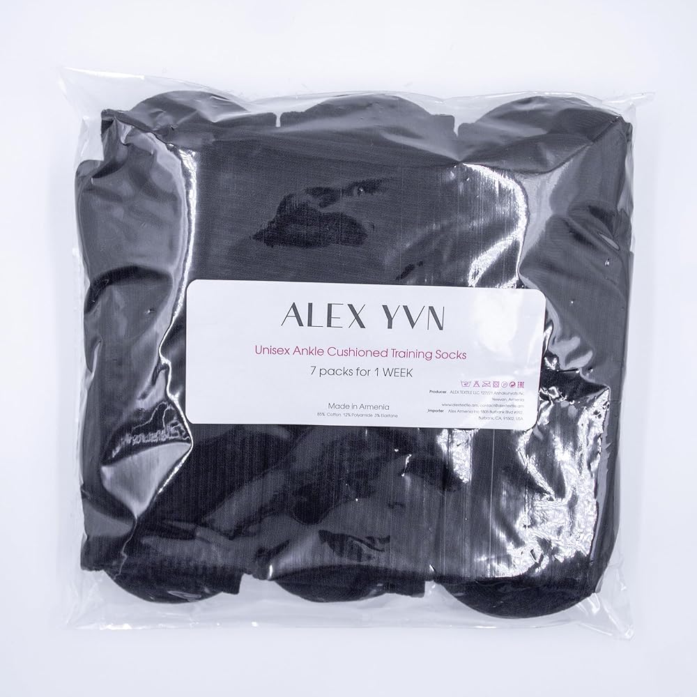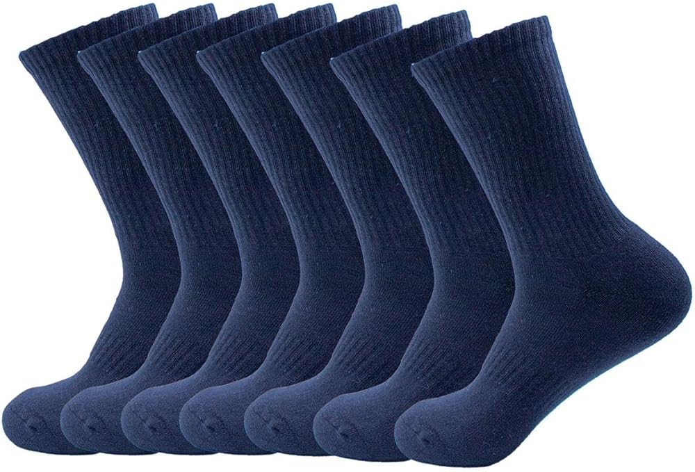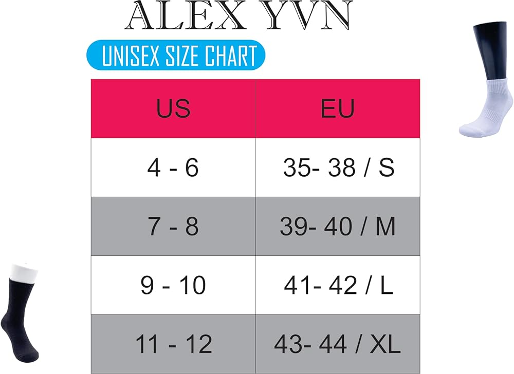 Alex YVN Unisex Everyday Cotton Crew Socks (7 Pairs) offer the perfect combination of dizain and comfort. Supportive fit with arch compression. Reinforced heel and toe for enhanced durability. Sizing: Women's Small (4-6), Medium (7-8) & Large (9-10) - Men's Medium (9-10), Large (11-12)