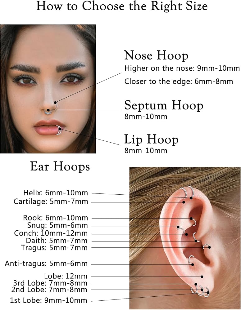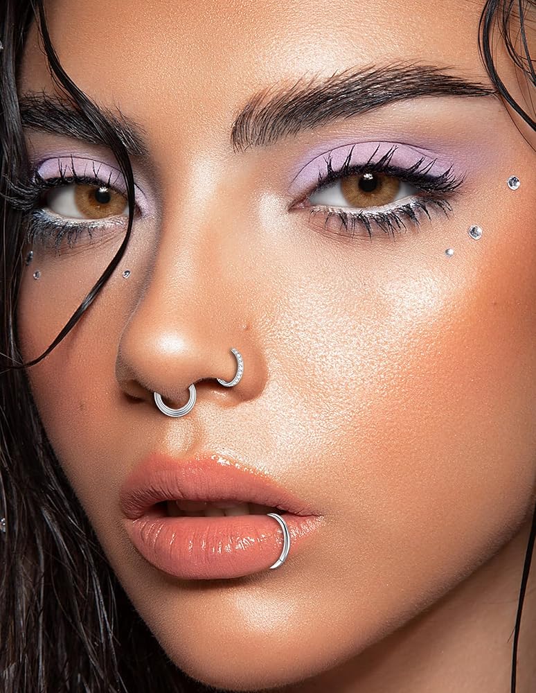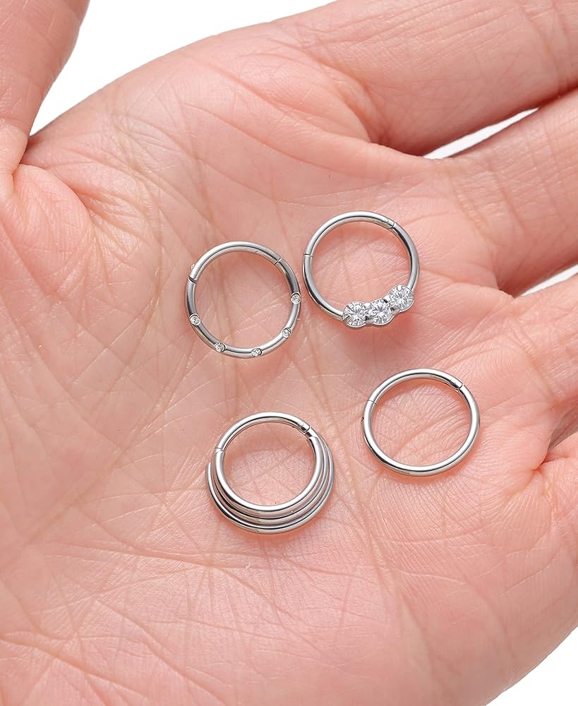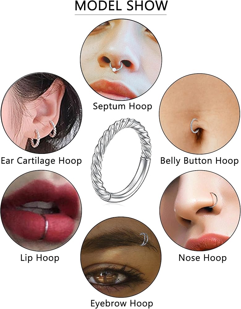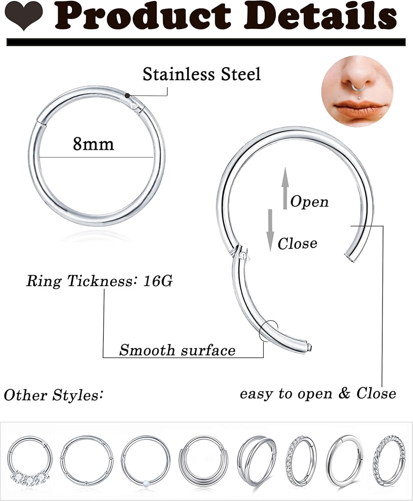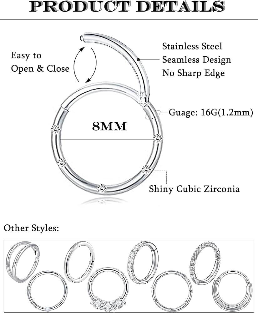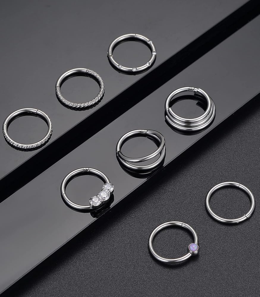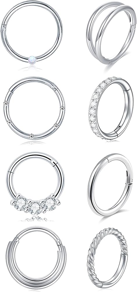 Akeoqi 8 قطع 16 جرام من الفولاذ المقاوم للصدأ حلقات الأنف الأطواق تشيكوسلوفاكيا أوبال سلس يتوقف الفرس الحاجز حلقة الزنمة محارة الحلزون الغضروف هوب أقراط Daith روك الأنف ثقب مجموعات المجوهرات للنساء الرجال 8 مم 10 مم