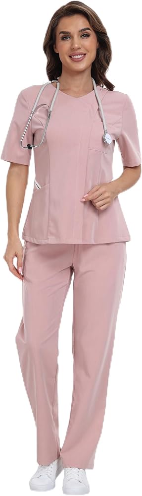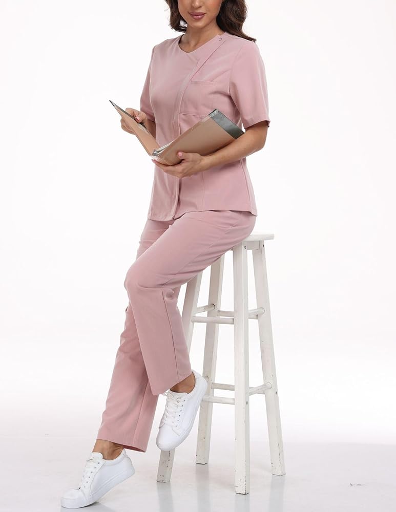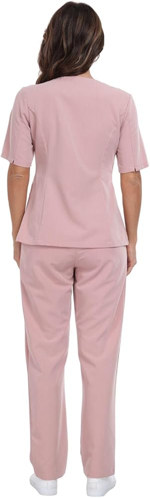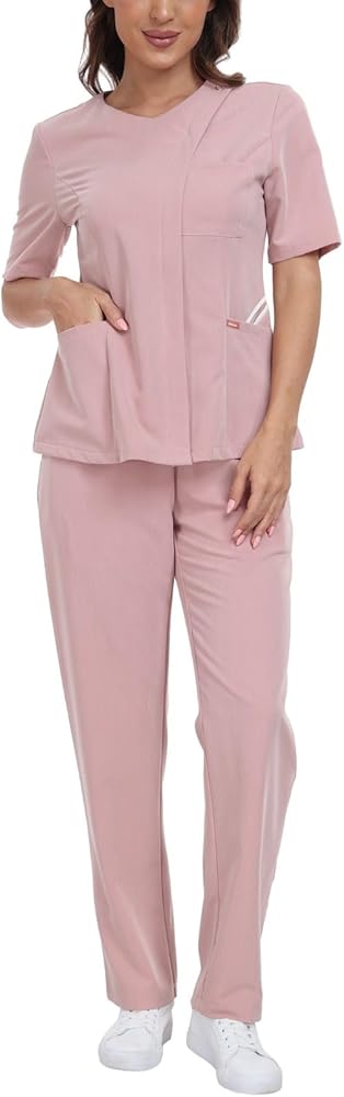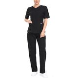 • راحة طوال اليوم: نوع قماش مطاطي مثالي (75% بوليستر، 18% رايون، 7% سباندكس) للملابس الطبية، اللون الأبيض ناعم كالحرير ولمعان لطيف، مريح في الارتداء لفترة طويلة.