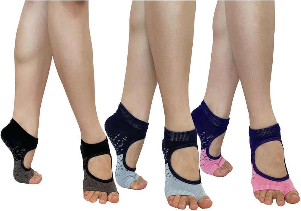 Open Toe Yoga Socks with Grips for Women, Non Slip Toeless Barre Pilates Socks