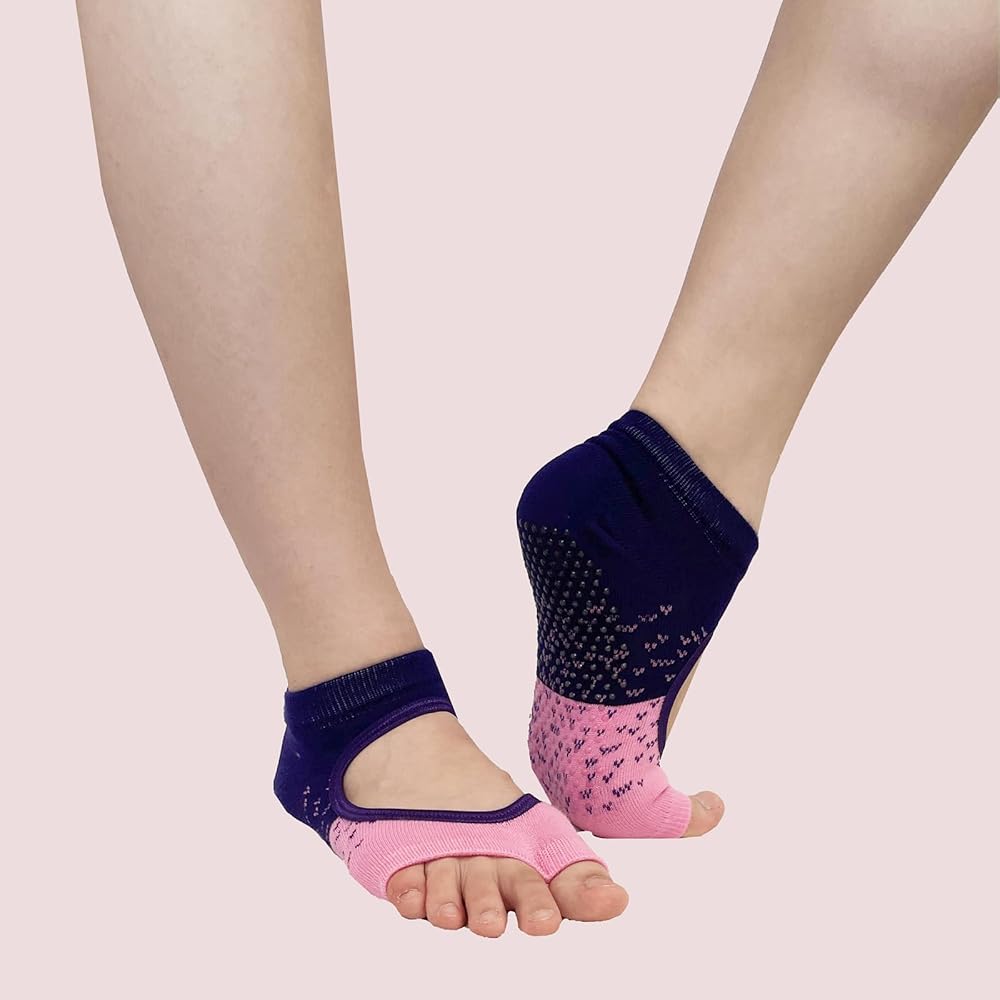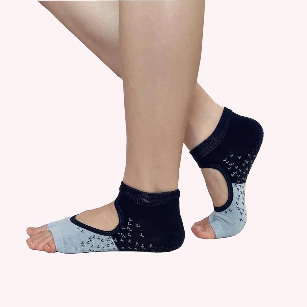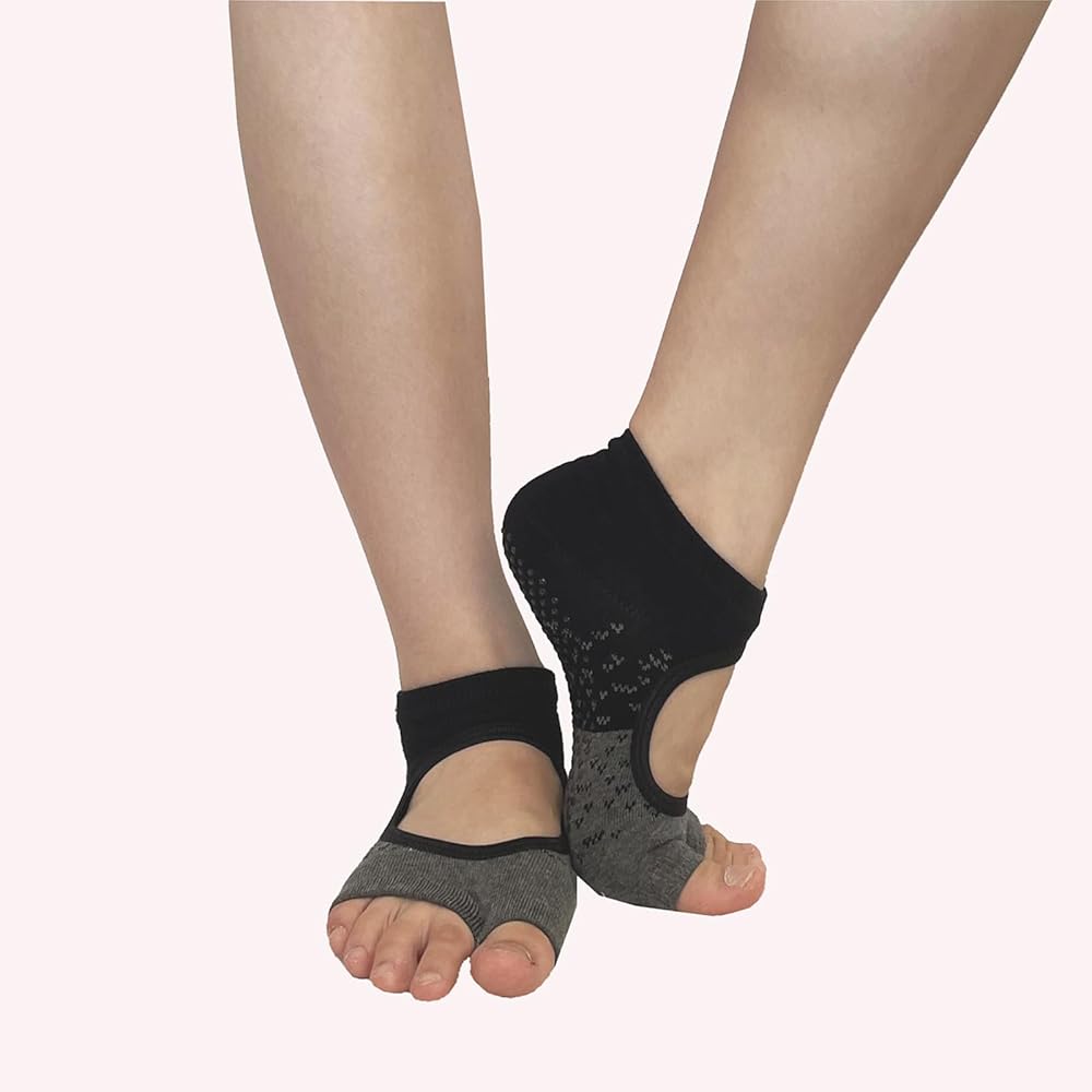 جوارب يوغا مفتوحة عند الأصابع مع مقابض للنساء، جوارب بيلاتيس غير قابلة للانزلاق