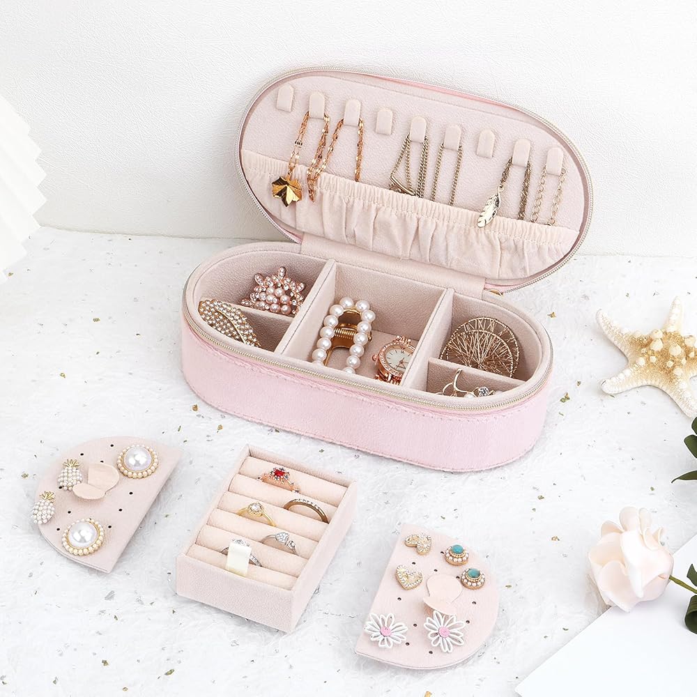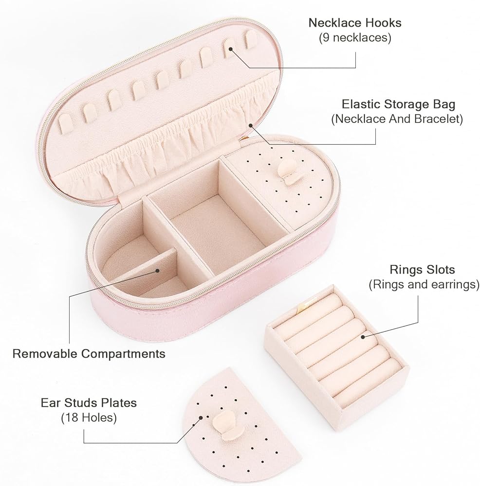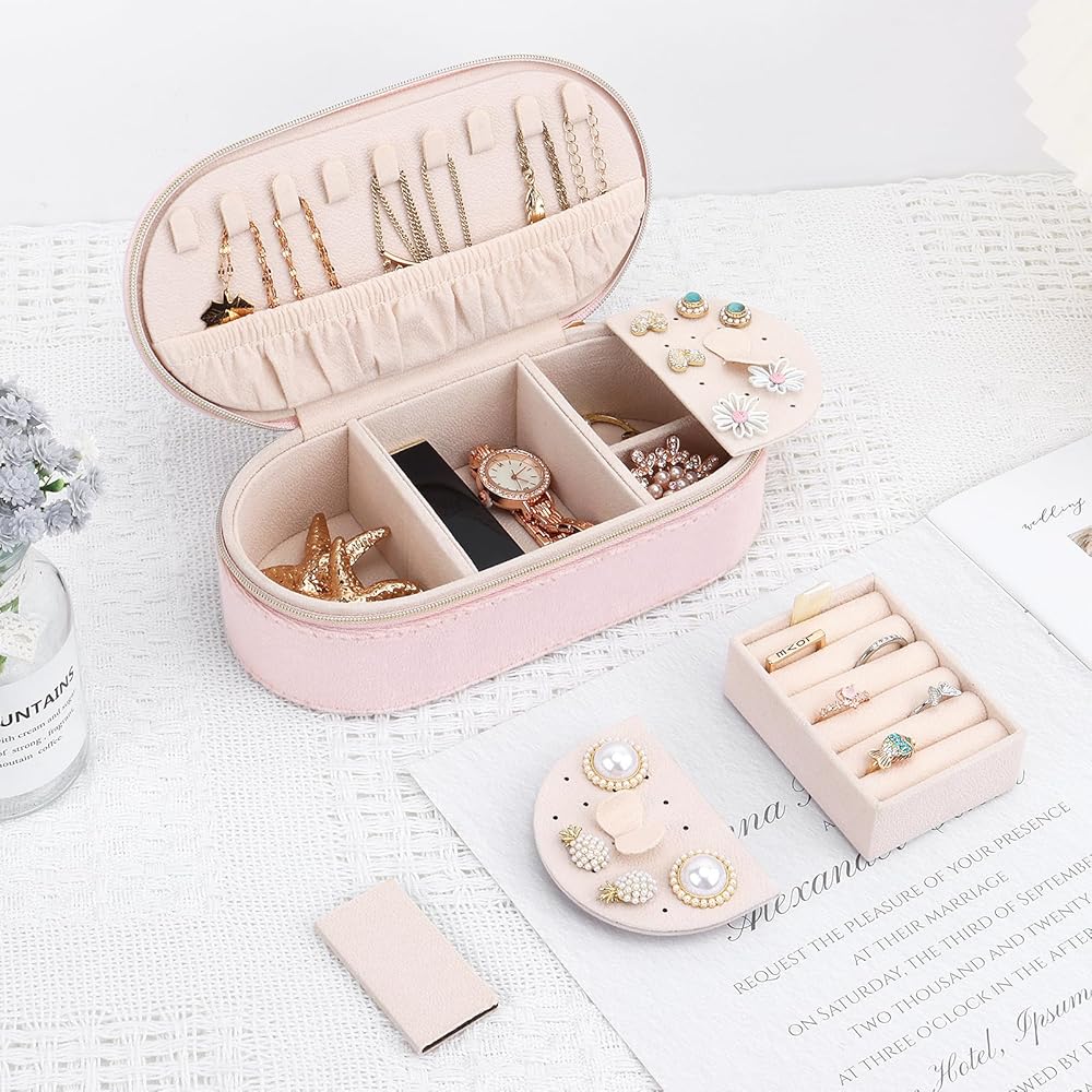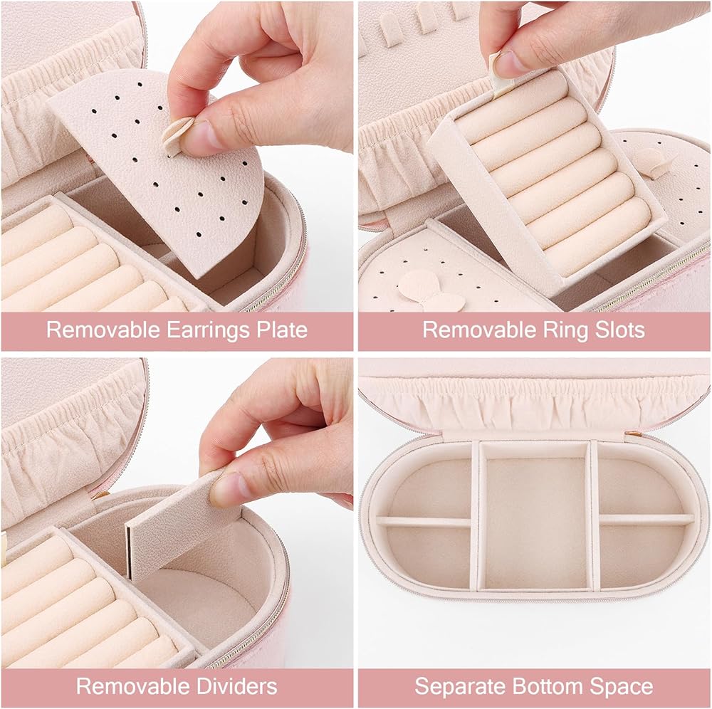 • 【عملي ورقيق】مصنوع من ألواح أقراط قابلة للإزالة وفتحة حلقية، يمكنك ضبط المساحة وفقًا لاحتياجاتك. صندوق المجوهرات المحمول واسع بما يكفي لتخزين الخواتم والأقراط والأساور والقلادة والساعات وأحمر الشفاه والدبابيس.
