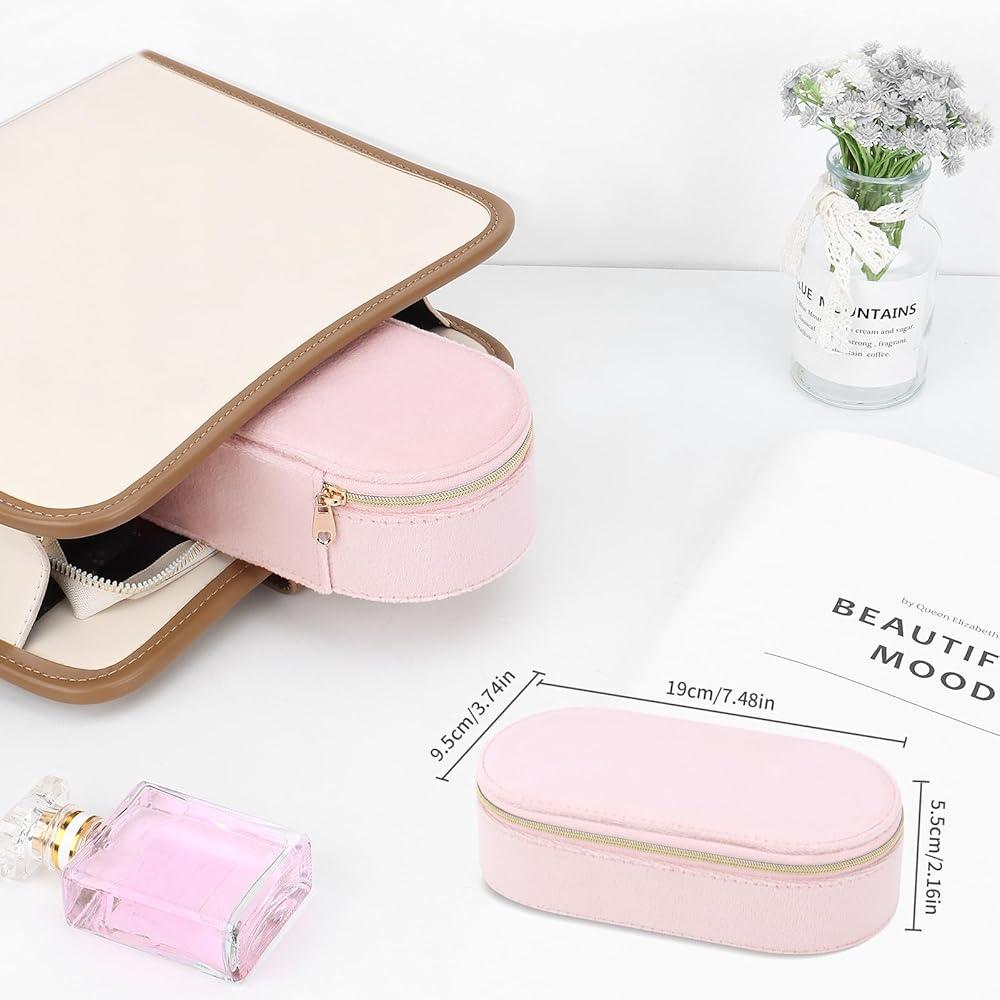 • 【صغير الحجم وقابل للحمل】 مقاس منظم السفر للمجوهرات 19*5.5*9.5 سم/ 7.48*2.16*3.74 بوصة. التصميم خفيف الوزن يجعل من السهل حملها في حقيبة يدك أو أمتعتك للرحلة أو رحلة عطلة نهاية الأسبوع أو رحلة العمل.