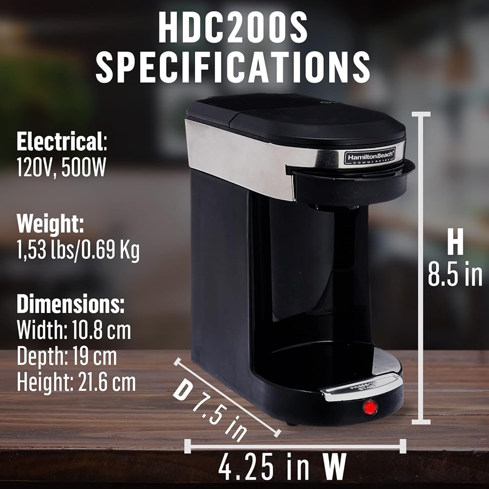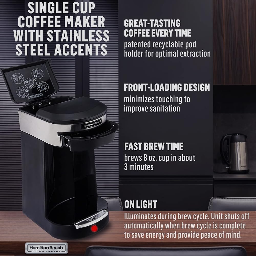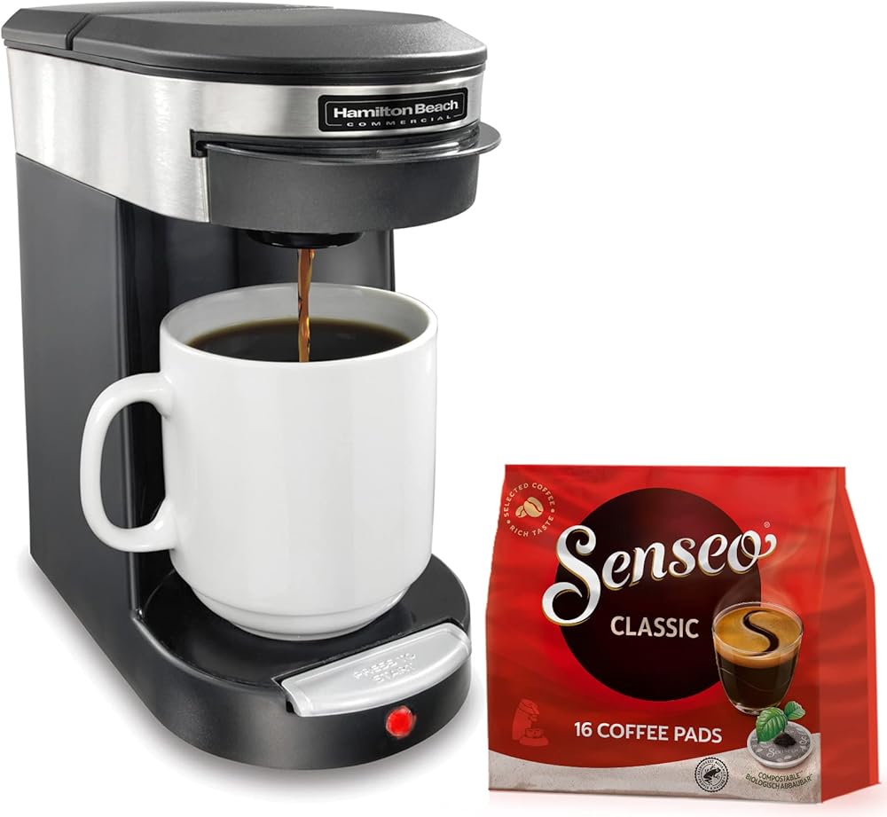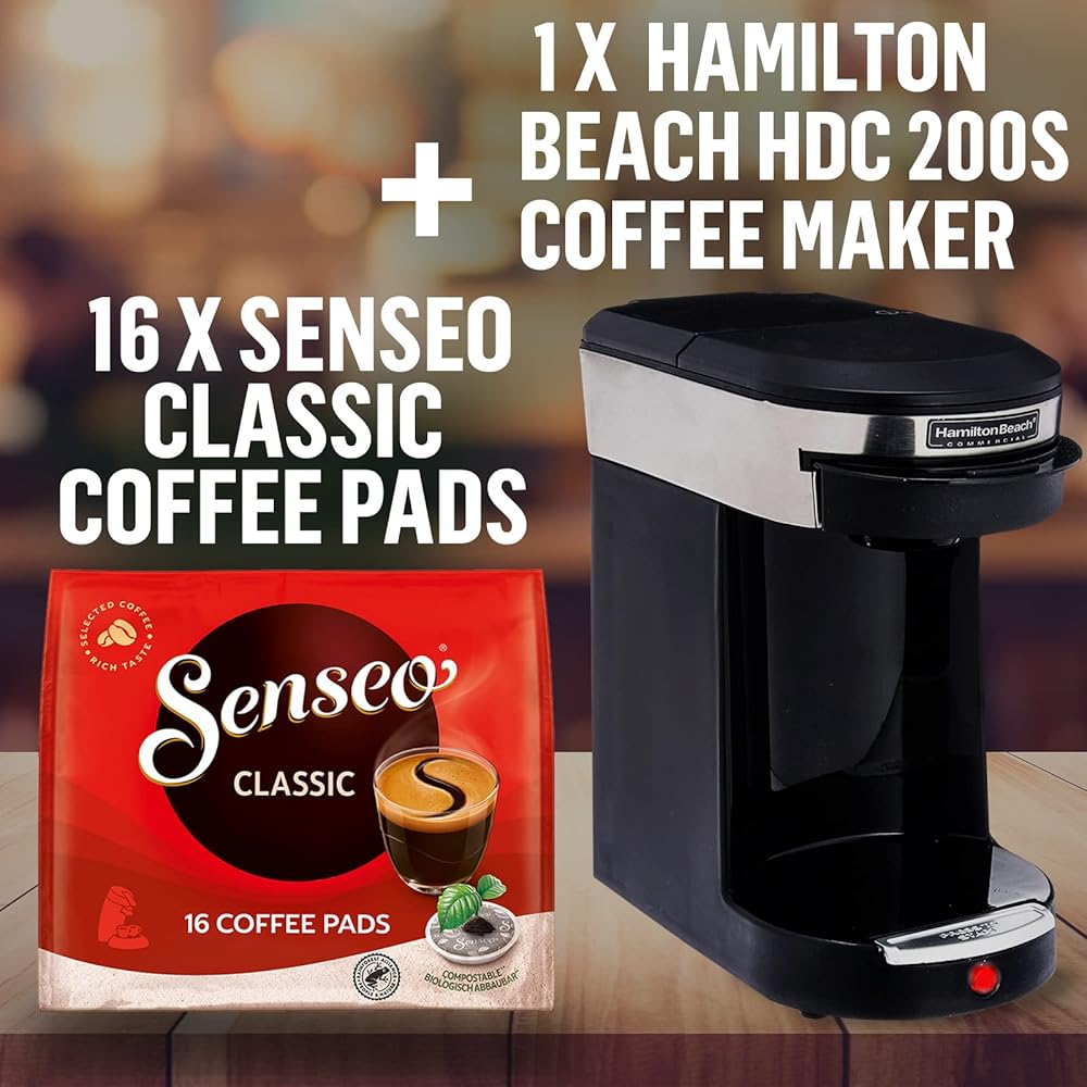 ماكينة صنع القهوة الفاخرة التجارية من سينسيو هاميلتون بيتش، كوب واحد من صانعة القهوة و16 كيس قهوة كلاسيكي مشوي متوسط، أسود/ستانلس ستيل للضيافة الفردية لمدة 3 دقائق، HDC200S
