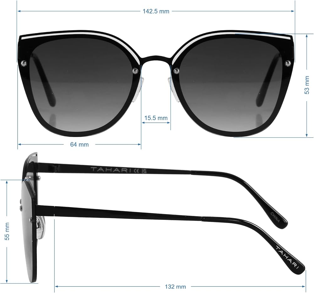 TAHARI DEFINES MODERN SOPHISTICATION: Pair these classic 100% UV protective TAHARI cat eye sunglasses for women with any outfit, made from a comfortable and lightweight metal frame with clear adjustable nose pads and soft temple tips for added comfort. Timeless elegant gifts for her.