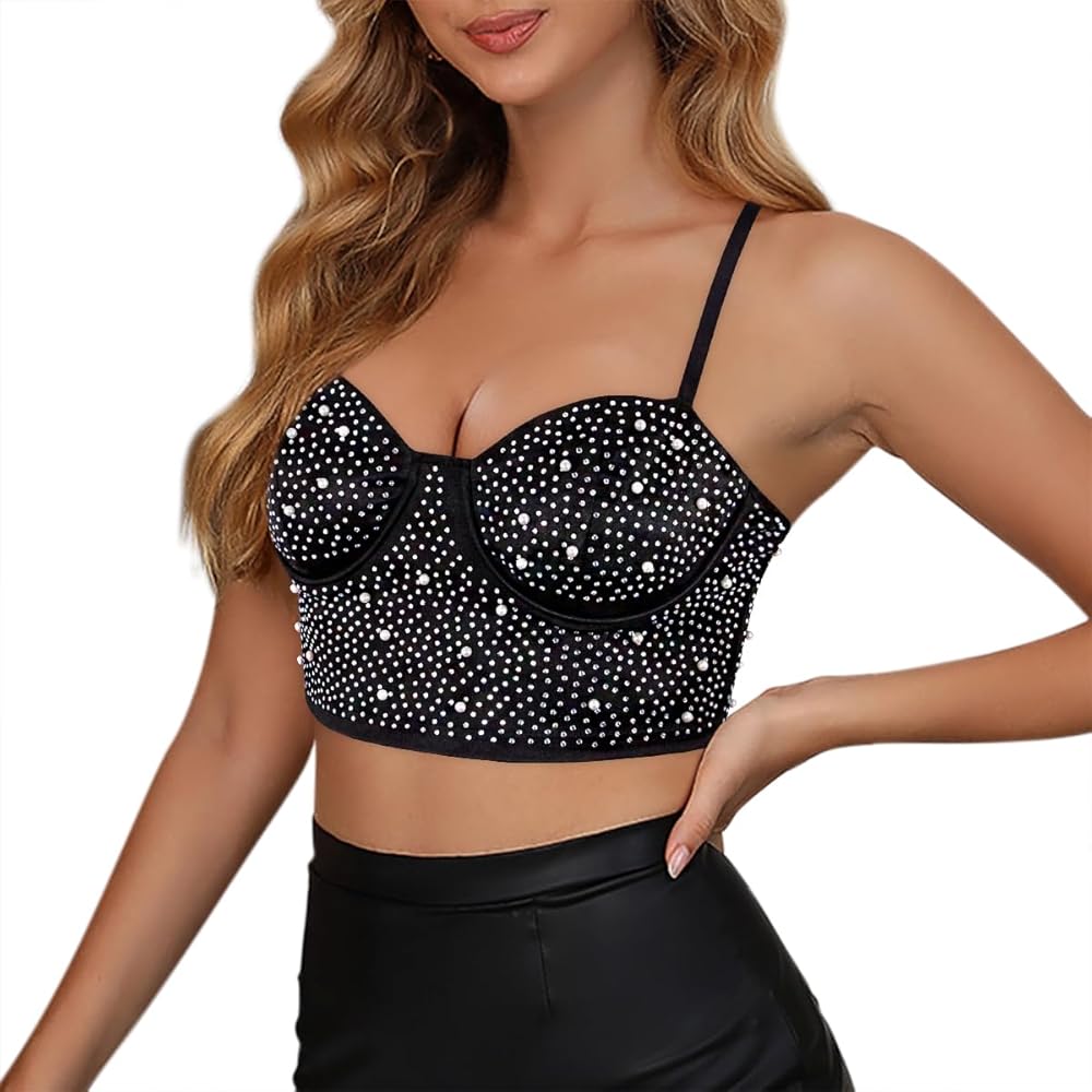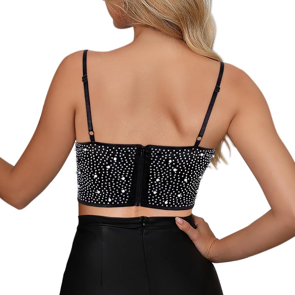 التصميم: يتميز الجزء العلوي من الصدرية بأحجار الراين اللامعة برقبة على شكل حرف V، وأشرطة سباغيتي قابلة للتعديل، وديكور من حجر الراين اللؤلؤي، وقميص بدون أكمام. يمكن للجزء العلوي القصير الضيق أن يظهر منحنيات جسمك بشكل جيد، بالإضافة إلى زخرفة حجر الراين اللامعة، إنها ملابس لافتة للنظر للغاية.