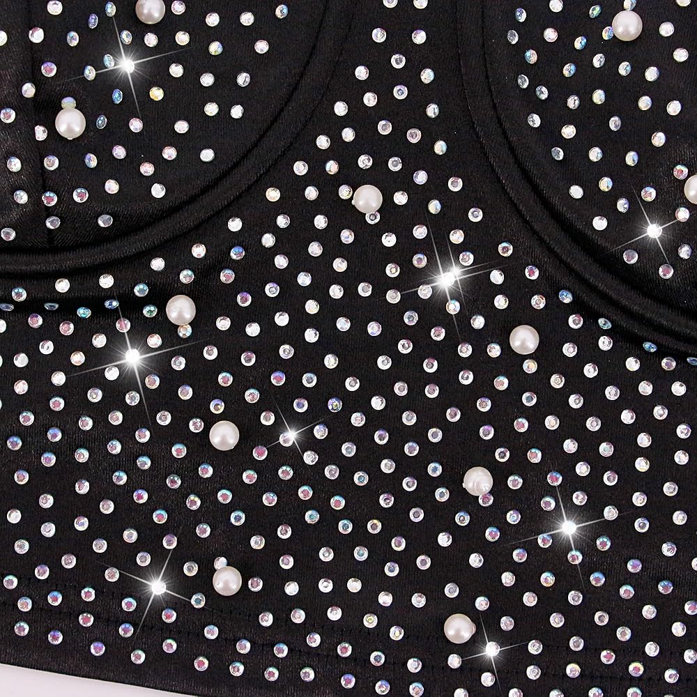 المواد: هذا القميص القصير المصنوع من حجر الراين مصنوع من البوليستر والألياف اللدنة، قميص بدون أكمام قصير مثير قابل للتمدد، مع نسيج مريح وسحاب خلفي، مسامي، ناعم، سهل الارتداء والخلع