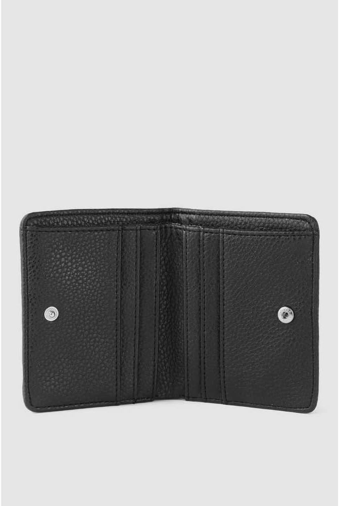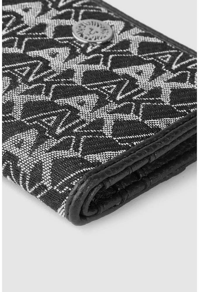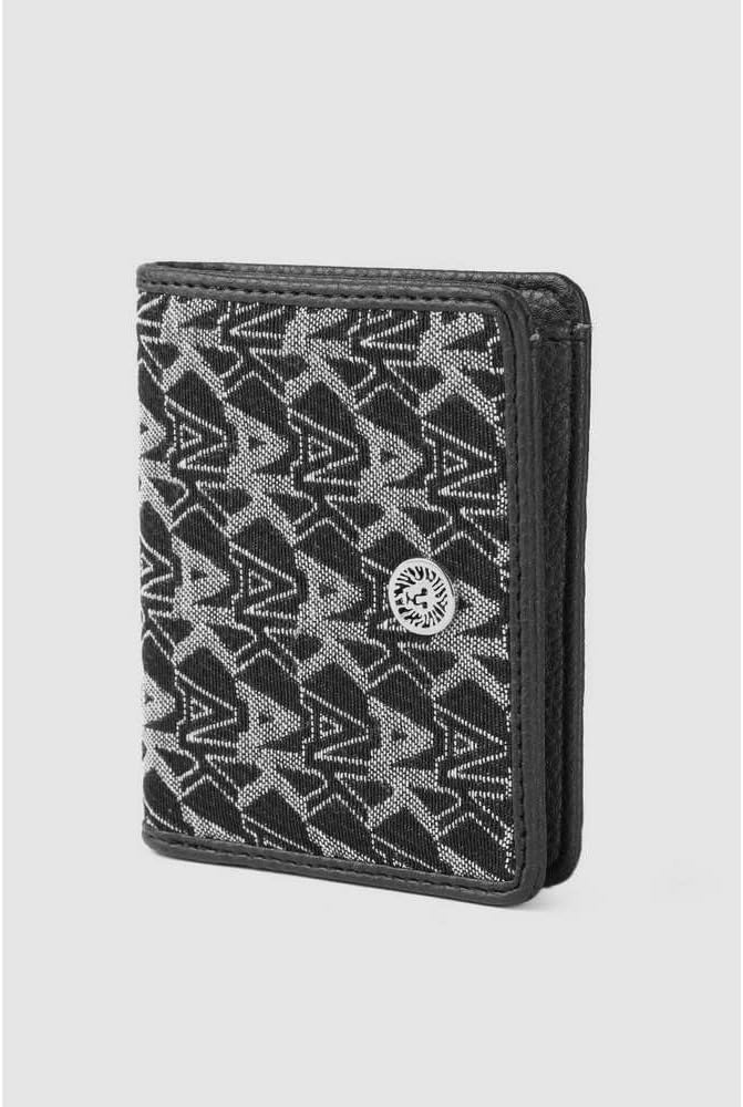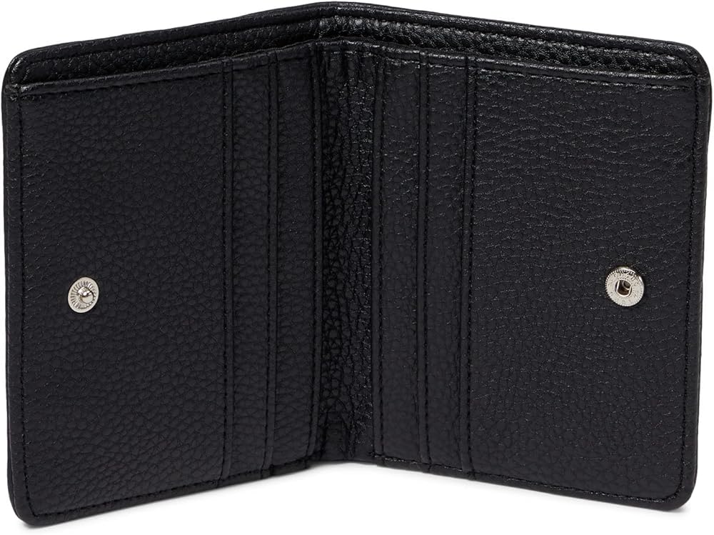 Featuring a textured design with brand detailing print on the front, the Anne Klein AK Logo Bifold Wallet comes with ample space to store your credit cards. Wallet made of polyester. Snap-button closure. Allover brand detailing. Curved edges on the wallet. Polyester lining. Polyurethane trim. Interior features one pocket and six credit card slots.