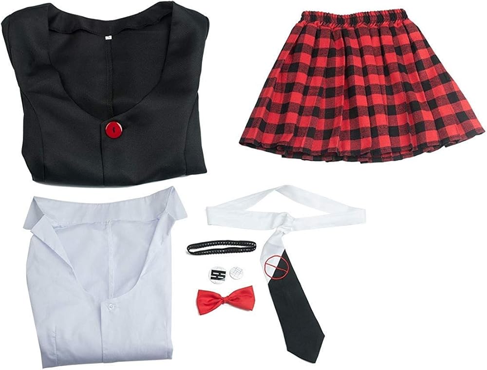 • ✔︎ المجموعة تتضمن: زي تنكري واحد (1) من Junko Enoشيما، يتضمن سترة وقميص وتنورة منقوشة وفيونكة حمراء وربطة عنق وشارات *2