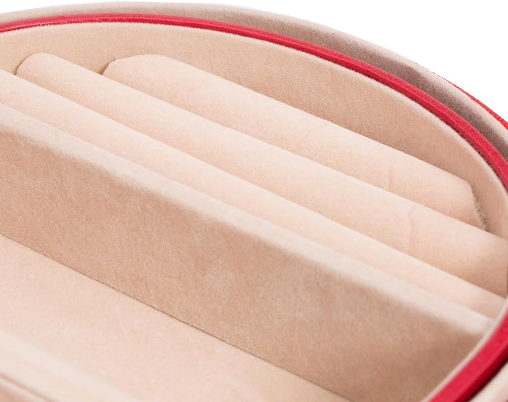 التخزين: 3 مساحات تخزين للمجوهرات وحقيبة سفر (قسمين للمجوهرات ولفة واحدة للخواتم)