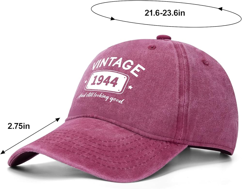 One Size - Our 80th Birthday Decorations Men Women Baseball Hat Circumference: 21.65-23.62inches / 55-60cm. Brim: 2.75inches / 7cm. Height: 3.54inches / 9cm. Adjustable Metal Buckle Back Closure, Great Fit for All Head Sizes.