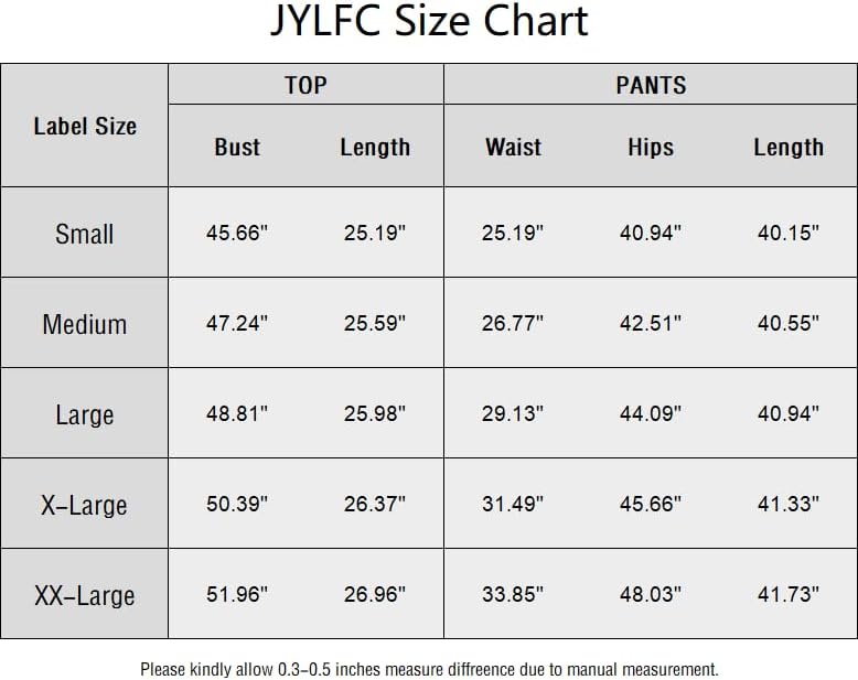 2X-Large: Bust 51.9", Waist 33.8", Hips 48.0", Pant Length 41.7"