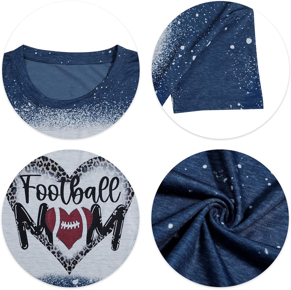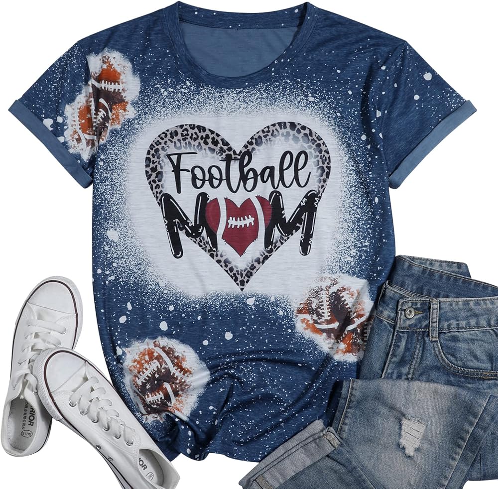 MOUSYA Football Mom Shirt Women Funny Bleached Leopard Heart Graphic Tees Casual Short Sleeve Game Day Tee Tops