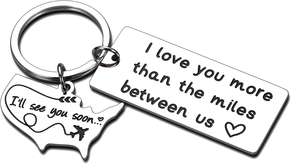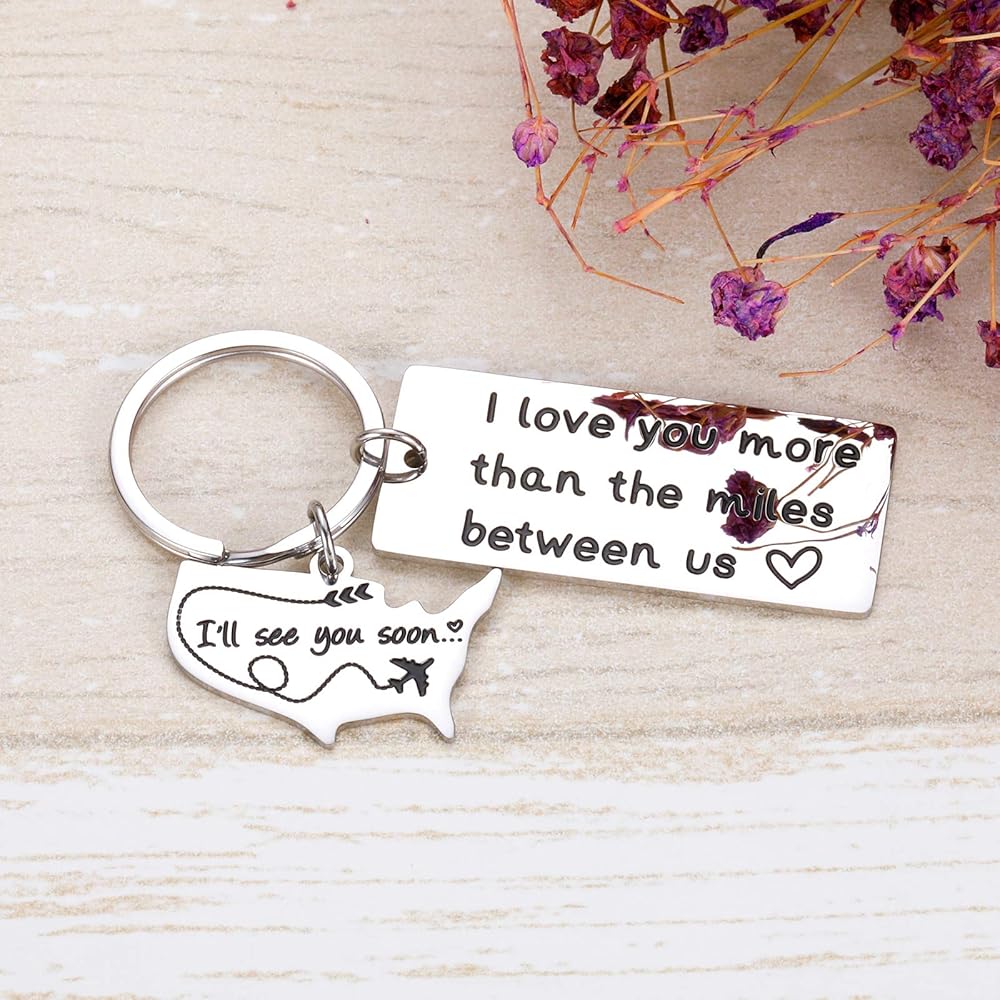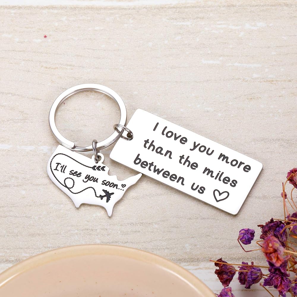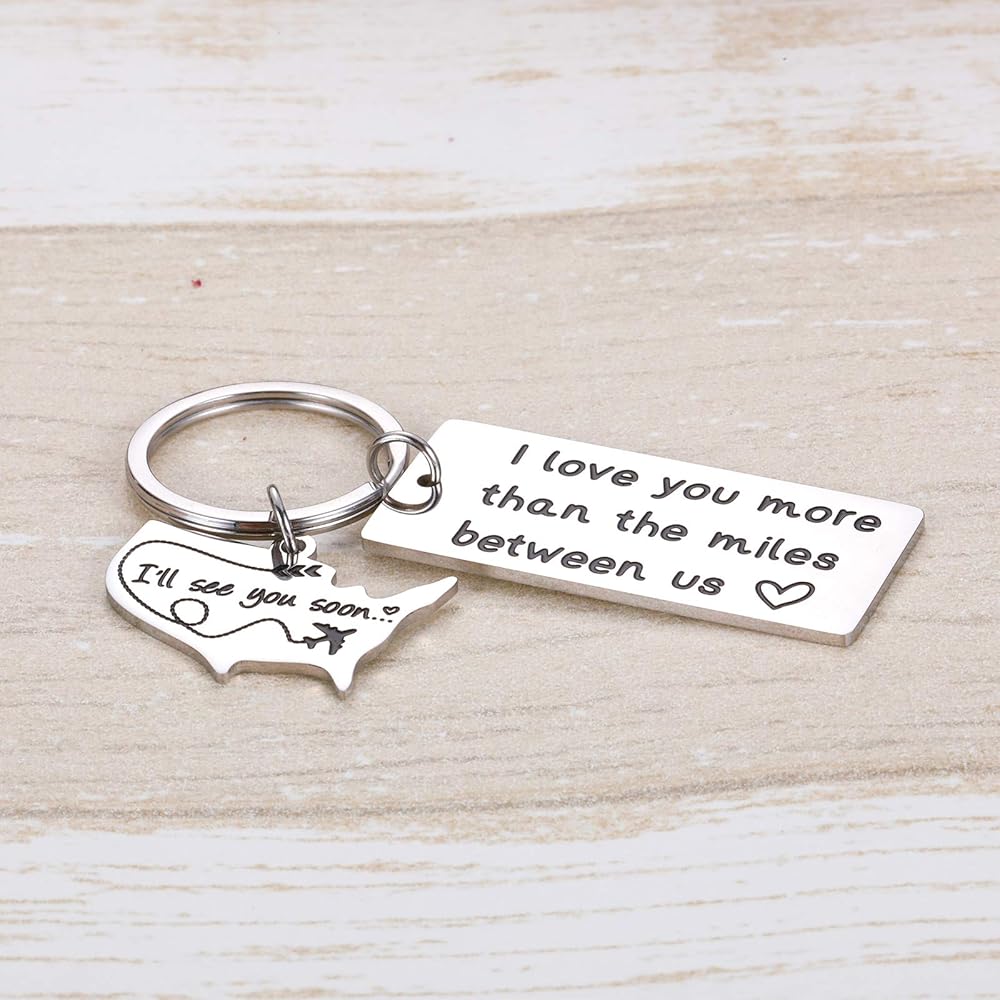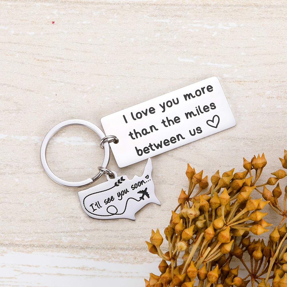 سلسلة مفاتيح بعبارة I Love You More than the Miles Between Us I See You Soon