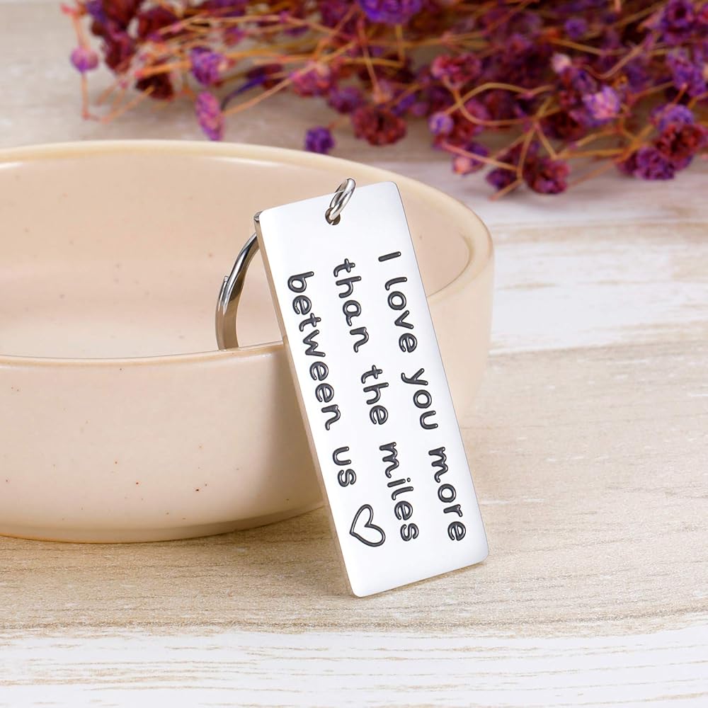 سلسلة مفاتيح بعبارة I love you more than the miles between us: 1.8 بوصة × 0.8 بوصة