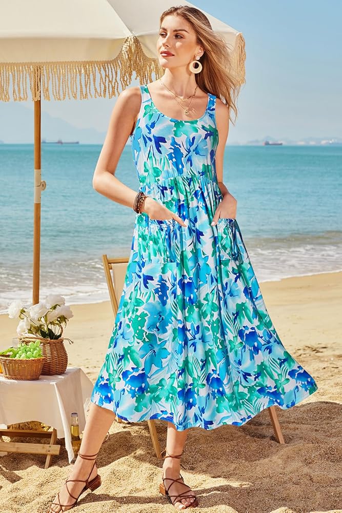 فستان بوهو ماكسي متعدد الاستخدامات للنساء: يمكنك ارتداء فستان الشاطئ الانسيابي هذا مع أحذية مسطحة وصنادل وشباشب وقبعة من القش وحقيبة منسوجة لمظهر يومي كاجوال، أو مع الكعب العالي وقلادة مفضلة وحقائب يد لمظهر أنثوي مثير وأنيق، يجب أن يكون لديك فستان ربيعي جميل بحزام سباغيتي