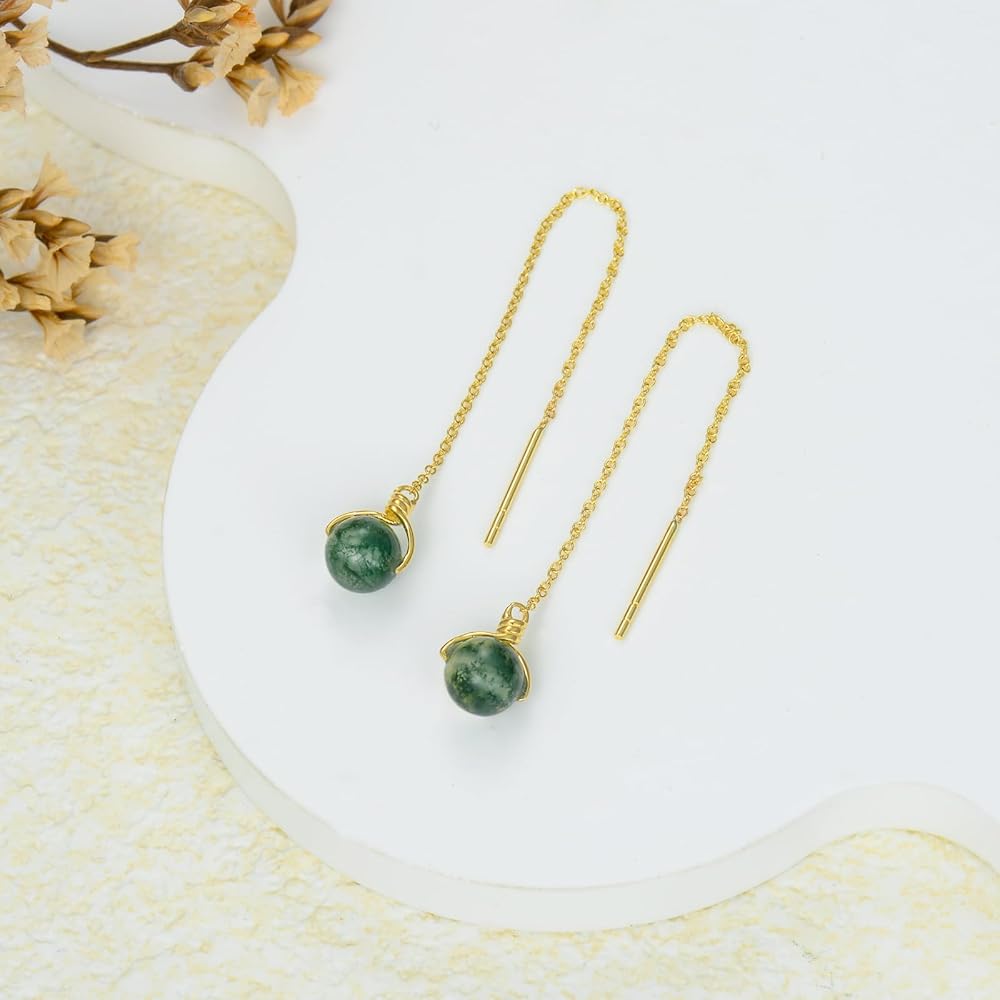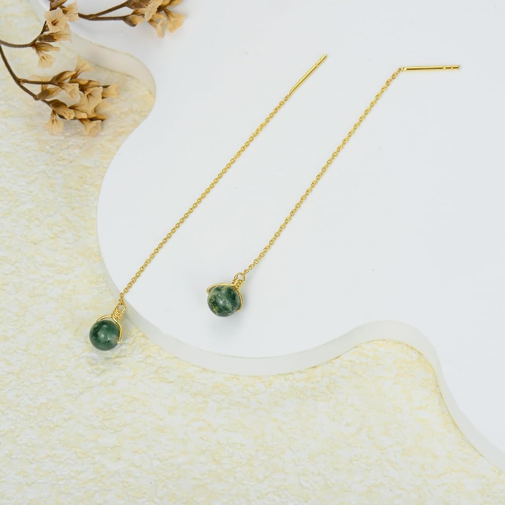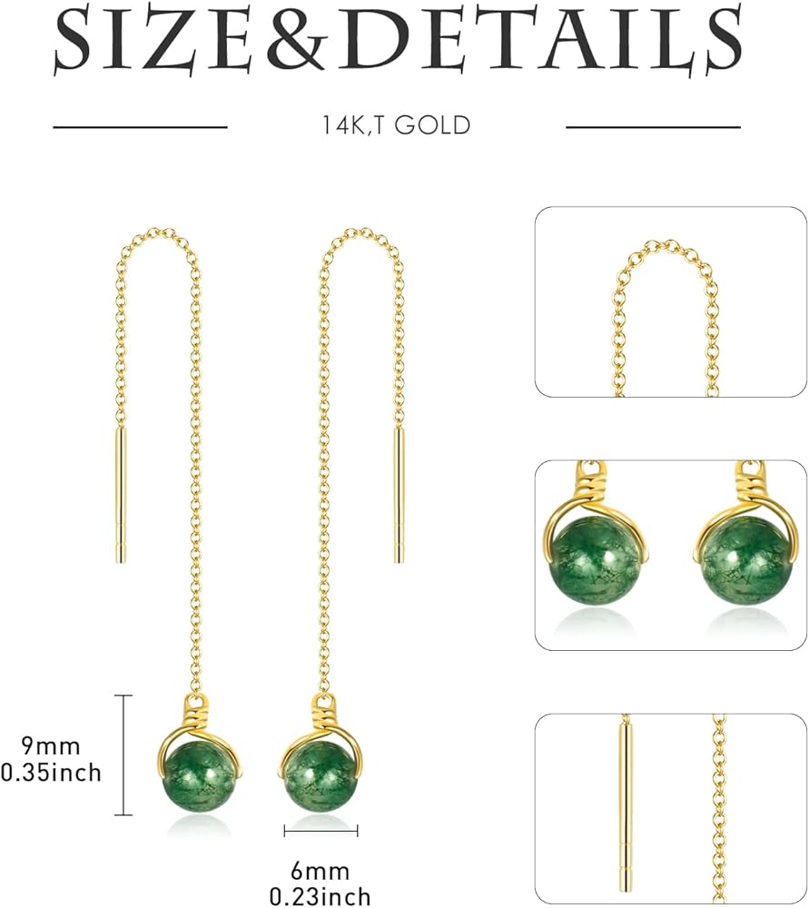 💖【أقراط من الذهب عيار 14 قيراط】- يرمز العقيق الطحلبي الطبيعي إلى الحيوية والحب الجميل. إنه يمثل أن الحب متشابك مدى الحياة مثل النباتات المائية في النهر، ولن يغادر أبدًا حتى الموت. يتم ارتداء هذه الأقراط الجميلة النقية القابلة للسحب بدون مشبك. ما عليك سوى سحبها من خلالها وتعديلها حسب الطول المطلوب. توفر مجموعة متنوعة من الإطلالات الجديدة اعتمادًا على الطول الذي تختاره لارتدائها.