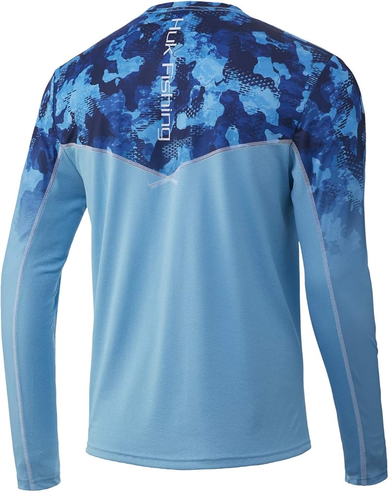 Huk: Uniting anglers through performance-engineered, technical gear designed to fuel your passion and pursuit no matter when, where or how you fish Huk Icon X Camo Long Sleeve Shirt: A Performance shirt that not only looks great but is comfortable and built with a durable poly-knit construction with mesh underarm and back SUN PROTECTION: This fishing shirt protects your skin from the sun's harmful rays - Huk added the most advanced sun-blocking +50 UPF materials to their apparel to block both UVA and UVB rays MOISTURE TRANSPORT: Keeping dry is critical to keeping warm on the cold water - Hydrophobic or "water-hating" quality within the fibers of this fishing shirt, transport sweat away from skin to the exterior of the shirt where it can evaporate efficiently I.C.E. Technology: I.C.E. (Internal Cooling Element) is a next to skin technology that creates a cooling effect. Fabrics feel cooler to the touch, work to wick perspiration away from you skin, and dry at a more rapid rate to help cool your body