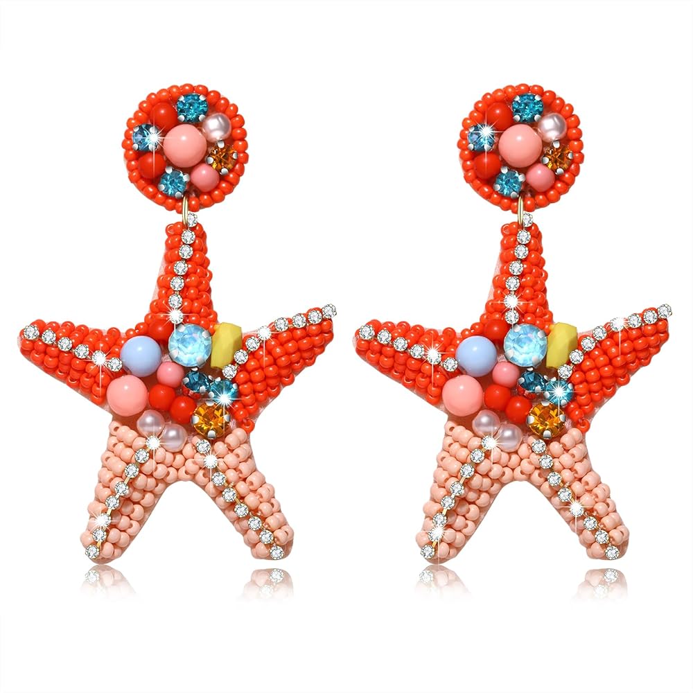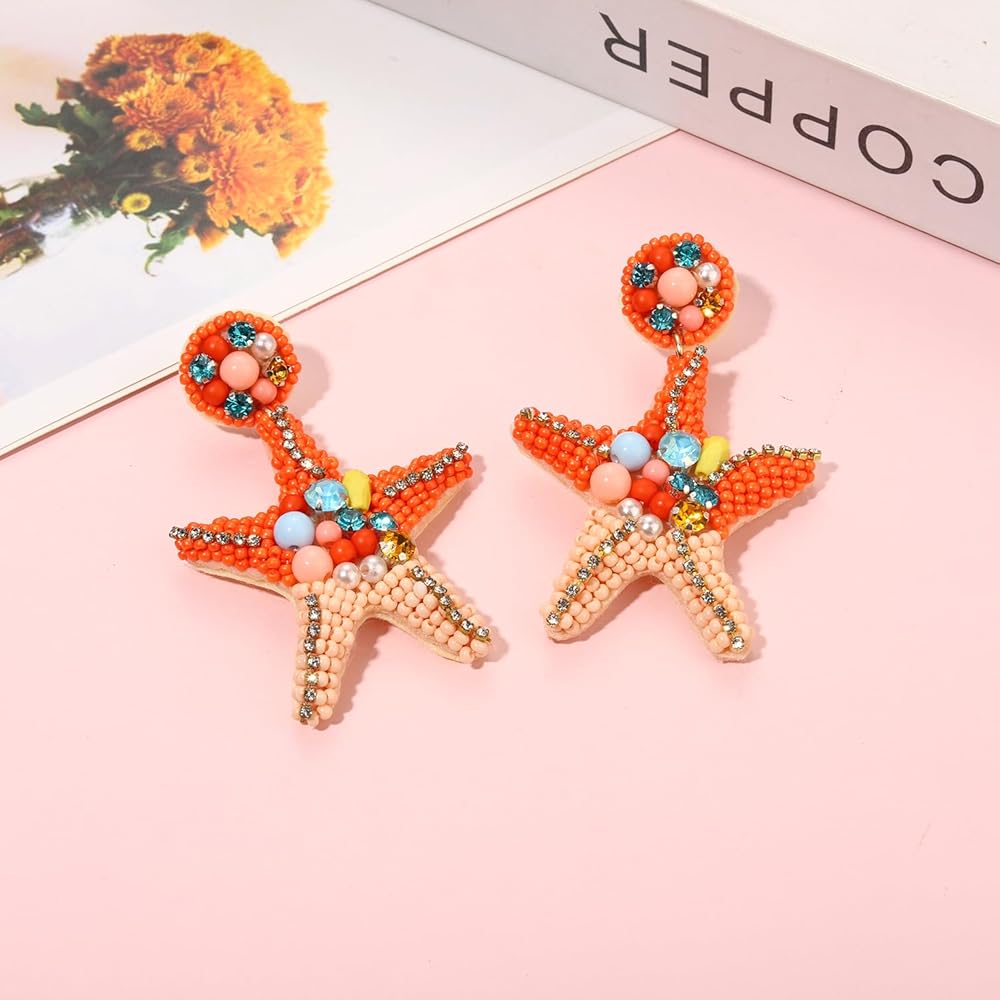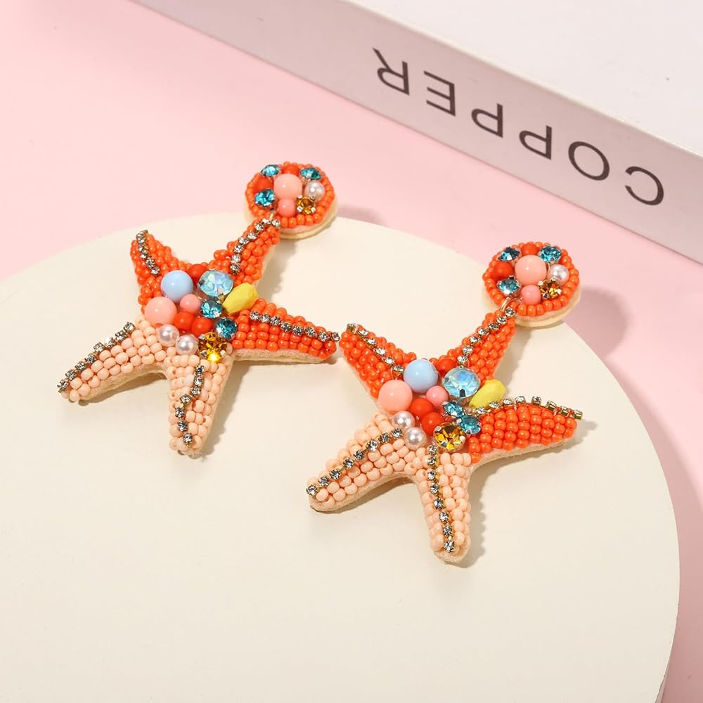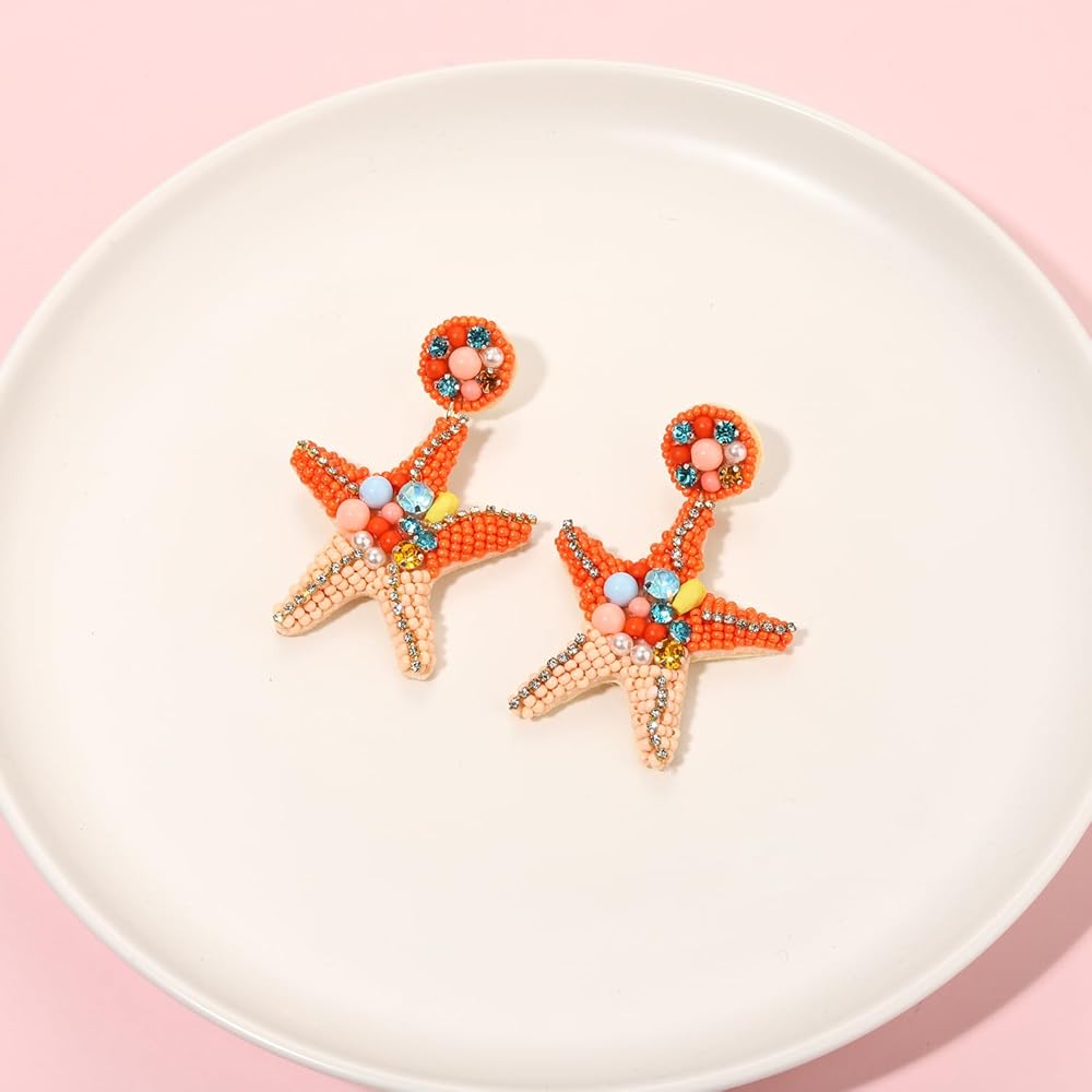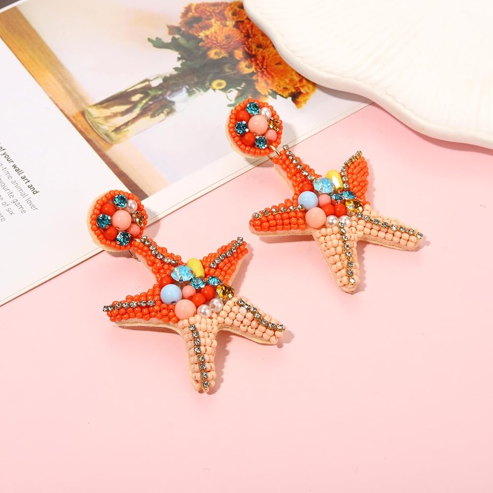 أقراط نجم البحر المطرزة: لا تغادر الشاطئ دون تحقيق بعض أمنيات نجم البحر... ونأمل أن تعود إلى الرمال قريبًا! أثناء تواجدك فيه، زيني الشواطئ بملابسك الطويلة أو الغطاء المفضل لديك وهذه الأقراط الزرقاء المزينة بالخرز! تعتبر هذه الأقراط المصنوعة من خرز نجم البحر في فصل الربيع والصيف إكسسوارًا مثاليًا لحزمها على الشاطئ أو حمام السباحة. التقط جمال البحر مع أقراطنا المتدلية الفريدة والرائعة من خرز نجم البحر! احصل على عطلة جاهزة! لم تبدو الإجازات بهذه الروعة من قبل.