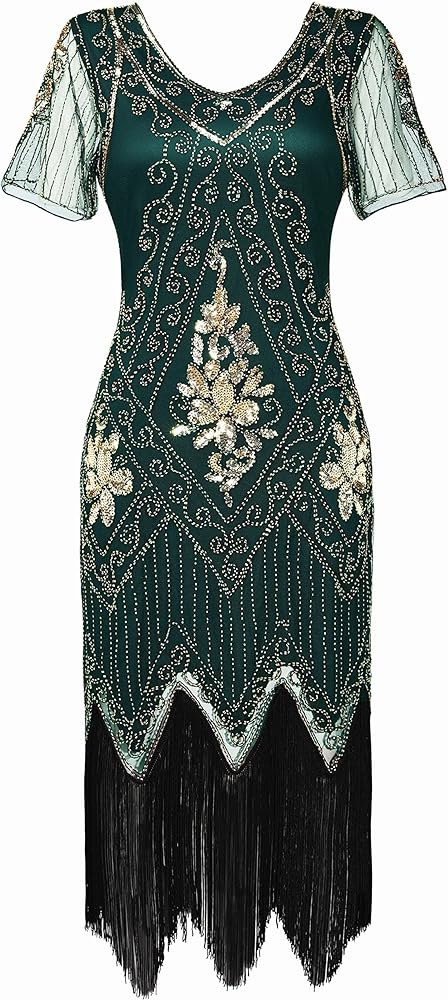 بيبيوند فستان آرت ديكو مزين بالترتر بشراشيب من عشرينيات القرن الماضي فستان غاتسبي التنكري بنمط العشرينات