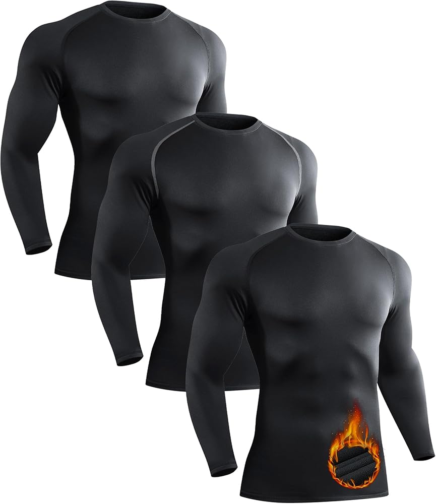 【مبطن بالصوف الناعم】نسيج الصوف الحراري للطبقة الأساسية يلتصق ببشرتك ويحبس حرارة الجسم، مما يجعله الخيار الأفضل بين القمصان الضاغطة للرجال.