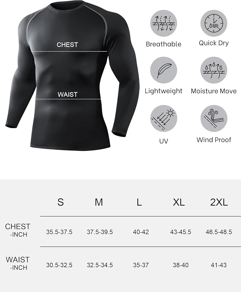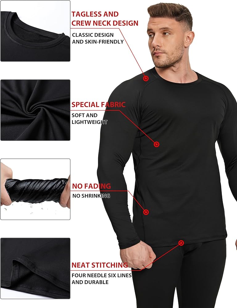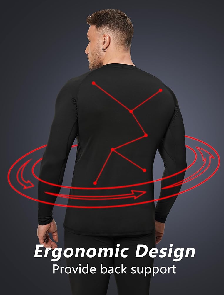 【تمدد في 4 اتجاهات】ملابسنا الداخلية الحرارية مصنوعة من مواد عالية المرونة، مما يمنحك مساحة إضافية للحركة. كما تحميك هذه القمصان من الاحتكاك والالتواء أثناء التمرين